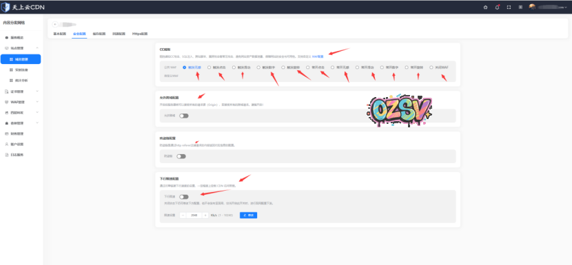 支持高级缓存、分层预热、动态加速、HTTPS加速、HTTP2加速、页面压缩、支持IPV6配置、智能压缩节省流量、