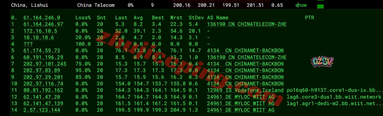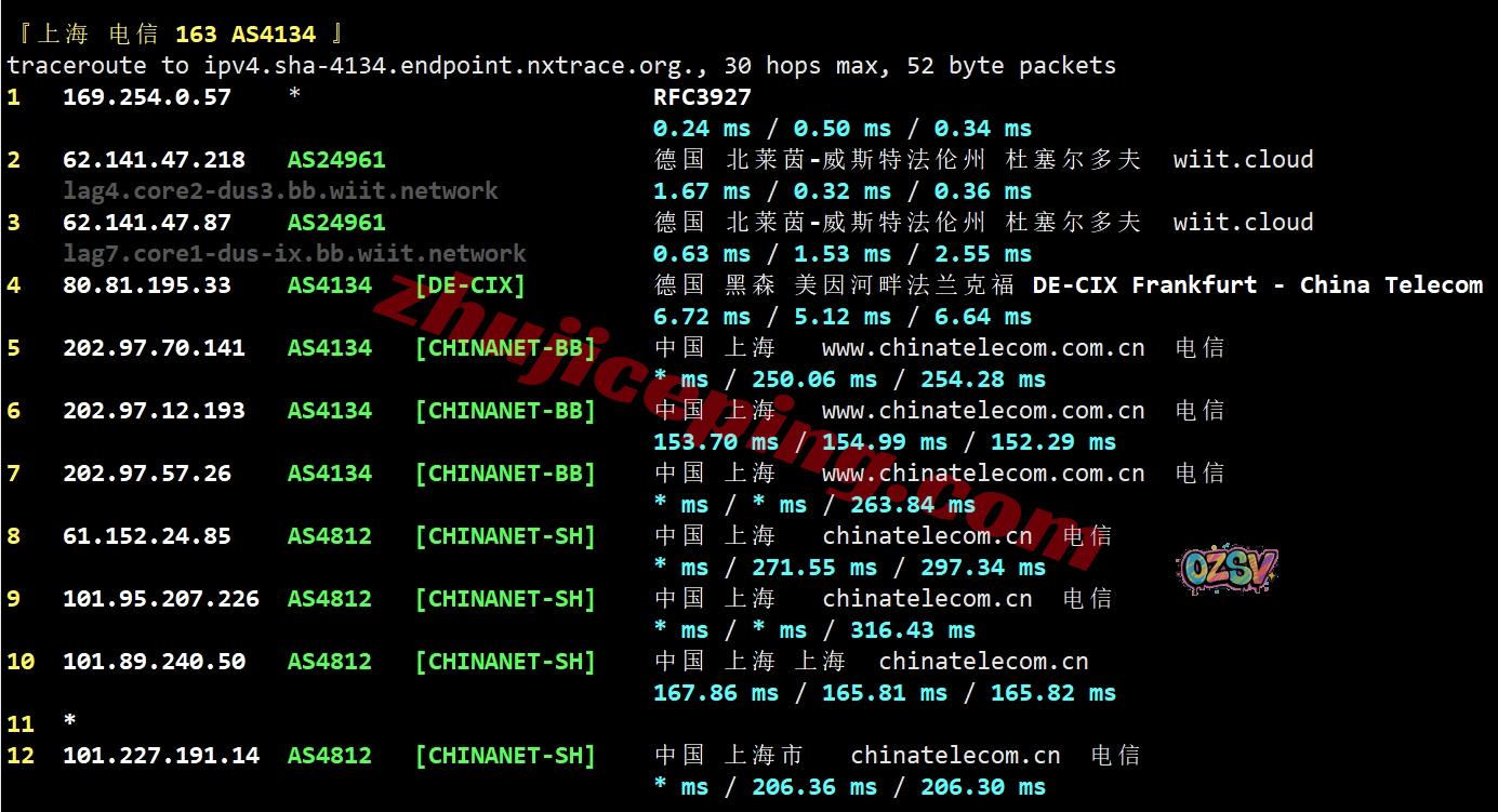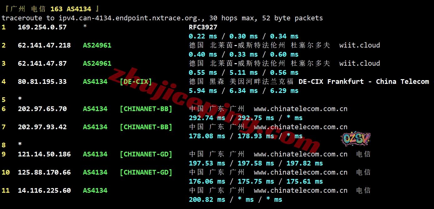 电信去程:直连电信德国法兰克福节点然后接WIIT去机房