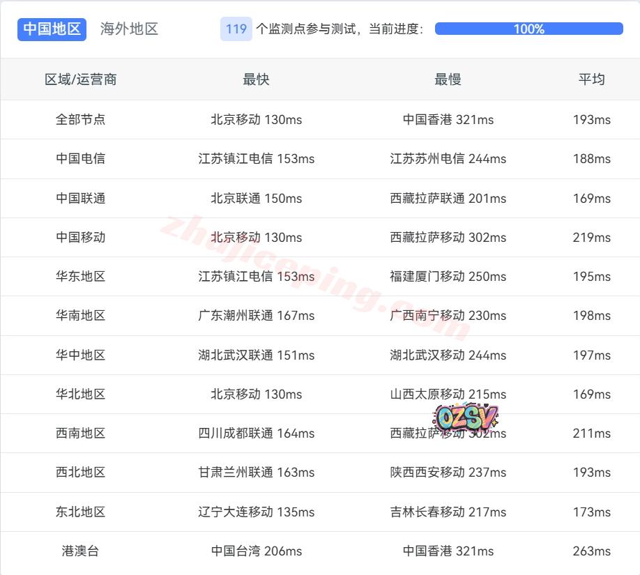 国内三网多节点的带宽上下行测试,大致结果如下: