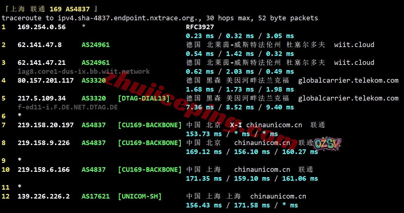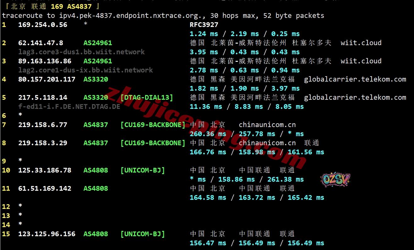 联通去程:直连联通德国法兰克福节点然后接telia转WIIT去机房