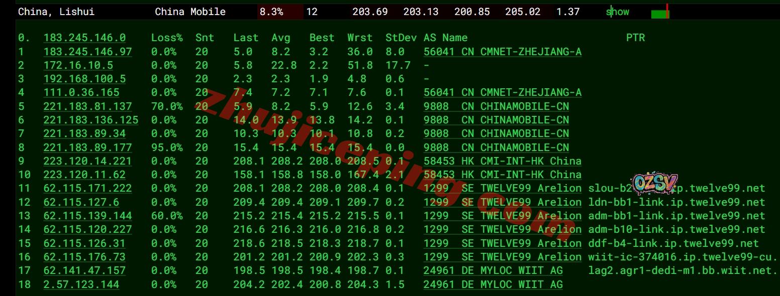 移动去程:直连移动英国伦敦节点,然后接telia去荷兰、德国