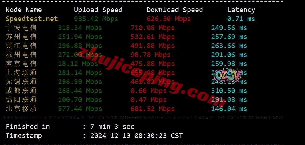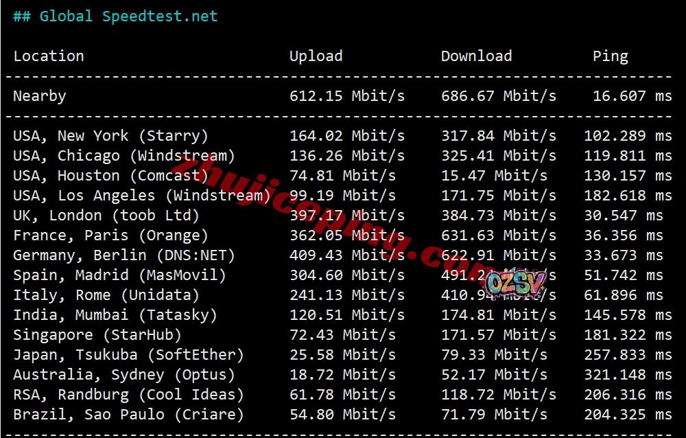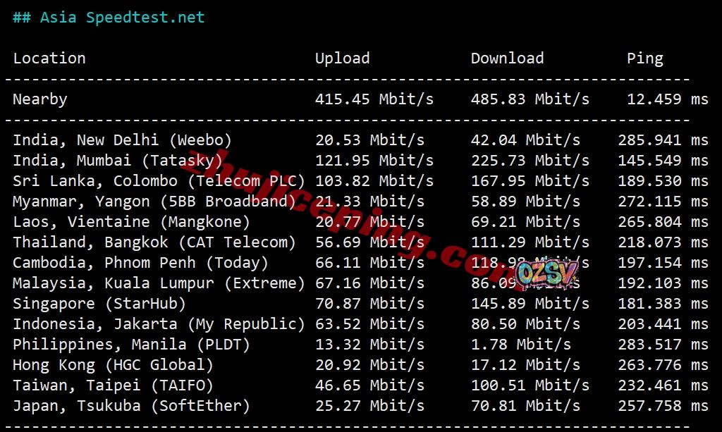 speedtest.net的部分亚洲区域内的节点的测试效果: