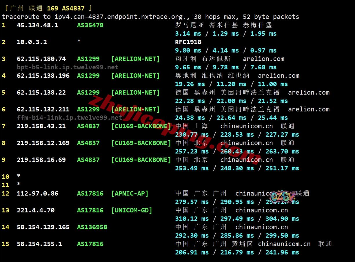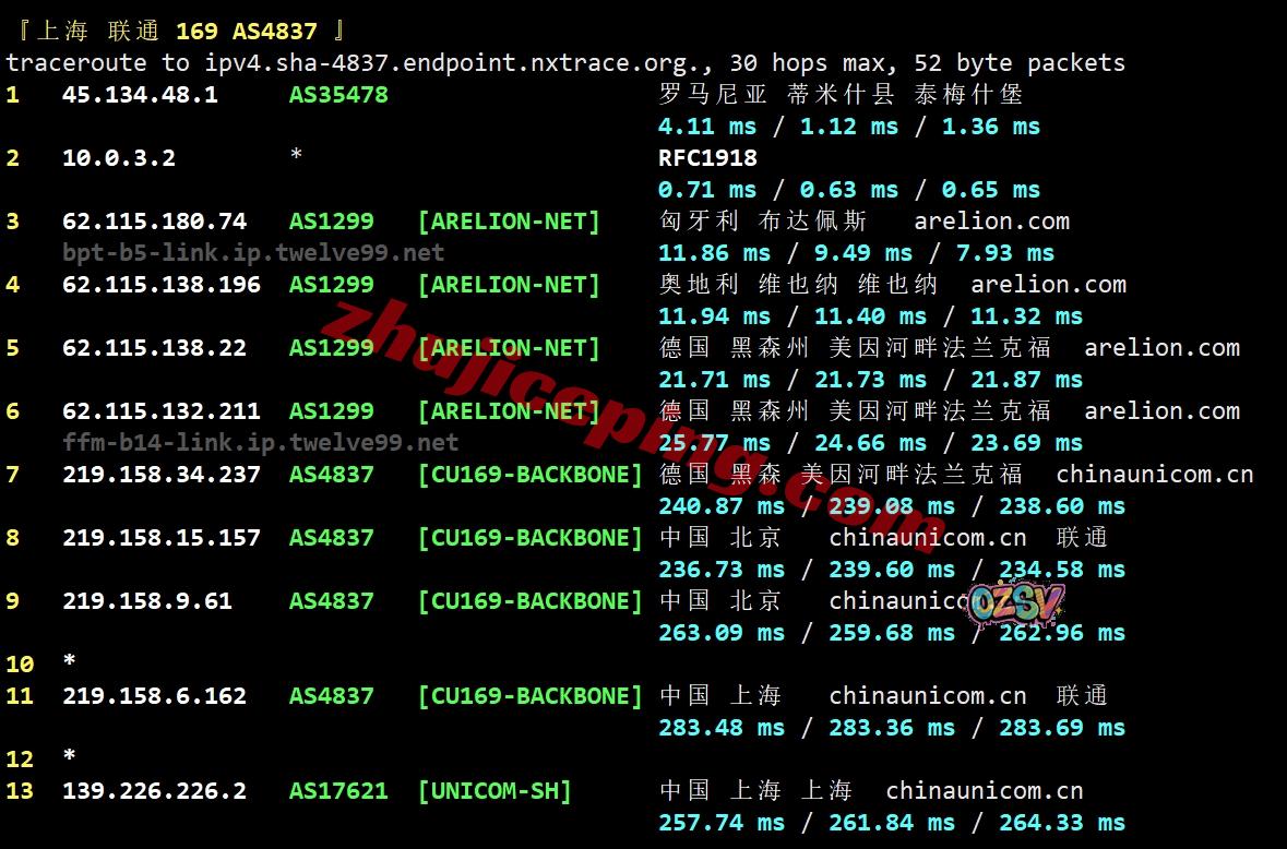 北京/上海方向:走telia经过匈牙利、奥地利、德国,从联通德国节点直连回国