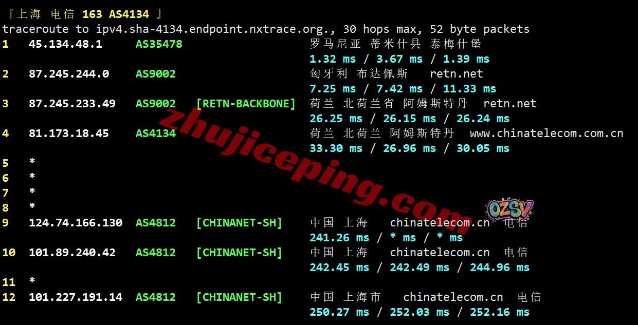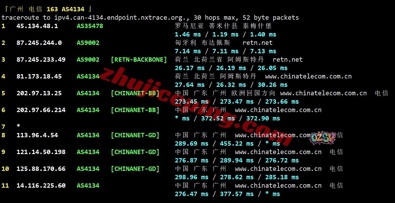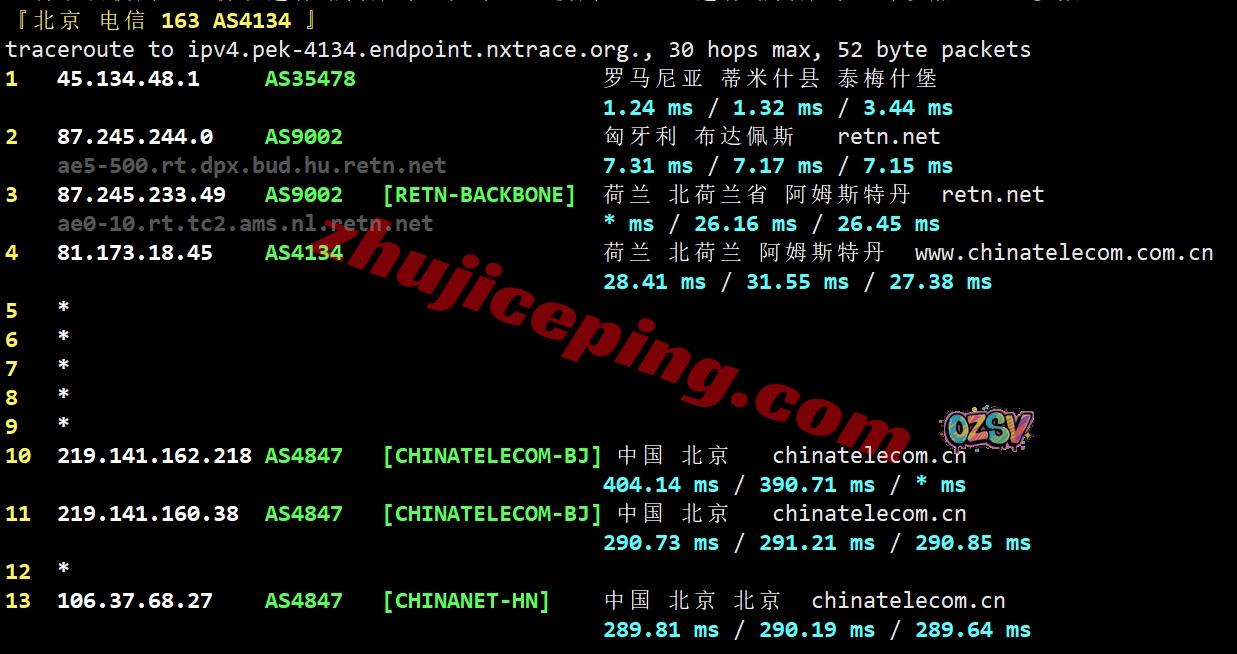 电信回程:走retn经过匈牙利、荷兰,从荷兰电信节点直连回国