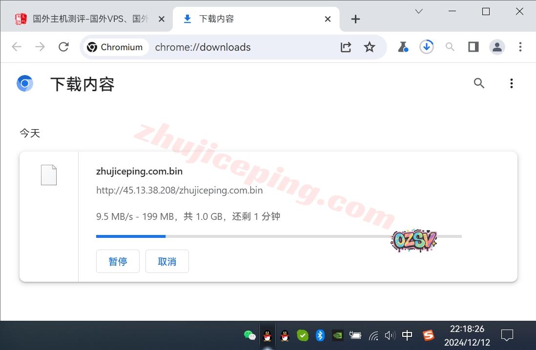 存放在测试VPS上的文件,广州联通家宽直接用Chrome下载该文件,大致下载速度如下: