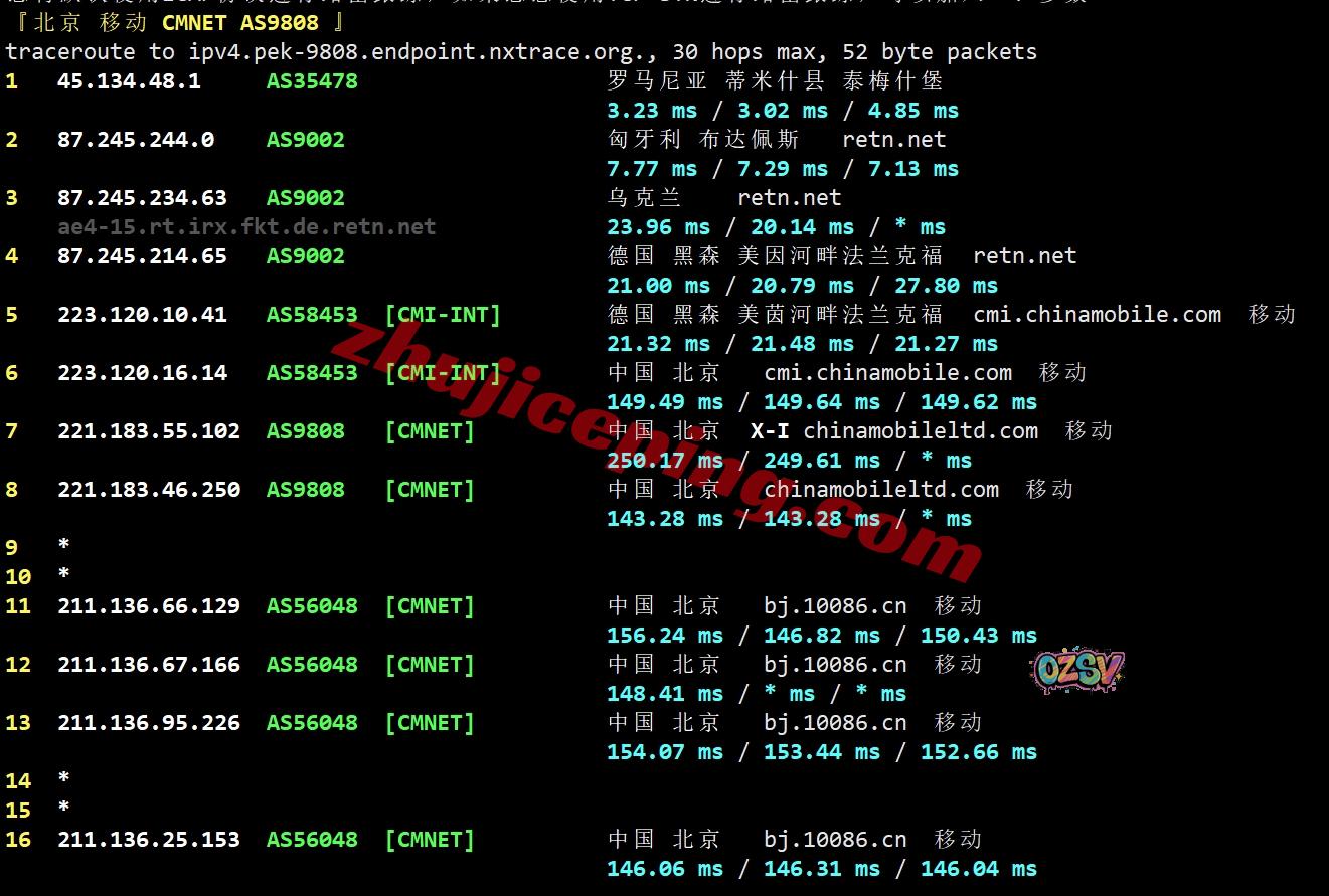 北京/广州方向:走retn经过匈牙利、乌克兰、德国,从移动德国法兰克福节点直连回国