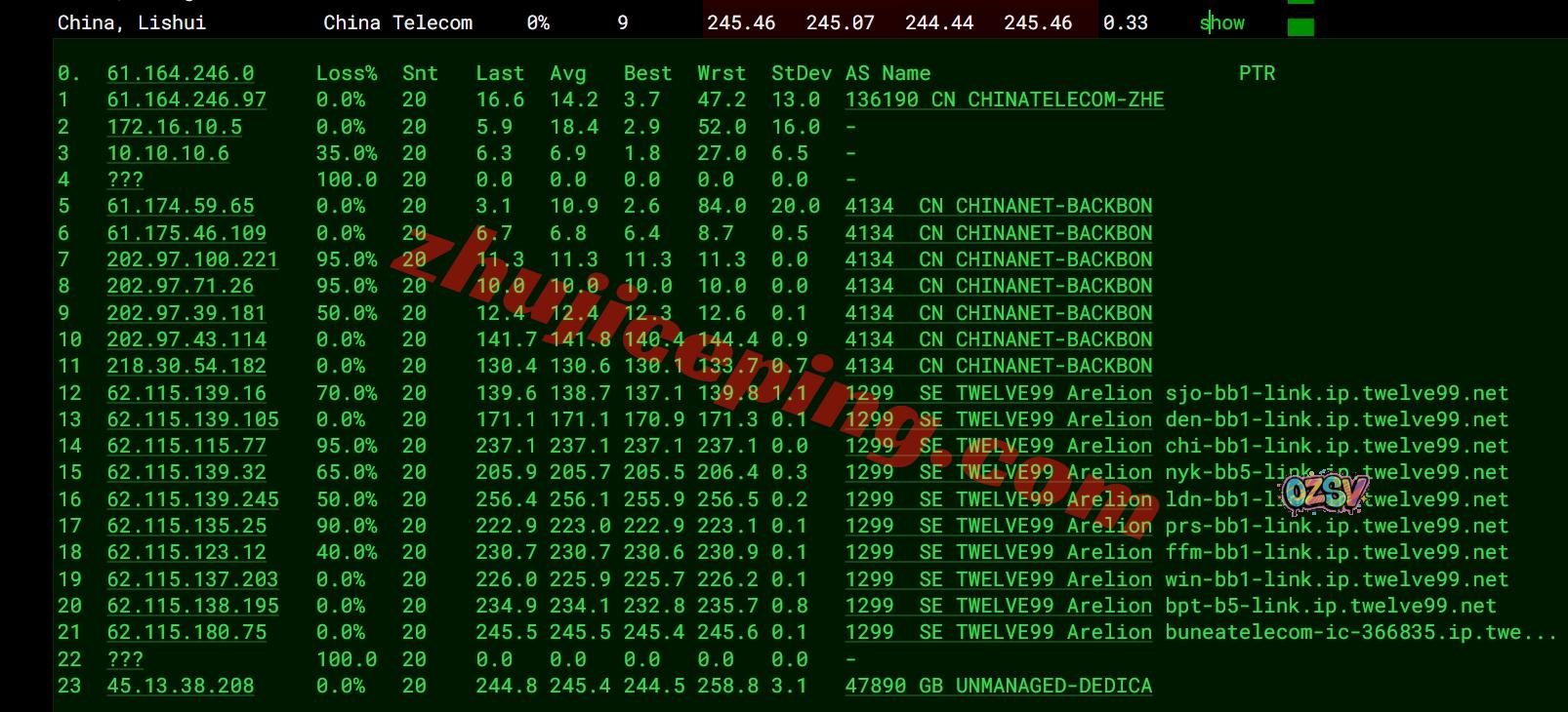 回程:电信和移动都是先国际线路,然后从欧洲的节点直连回国,联通也差不多,但是也有部分是纯国际线路回国。