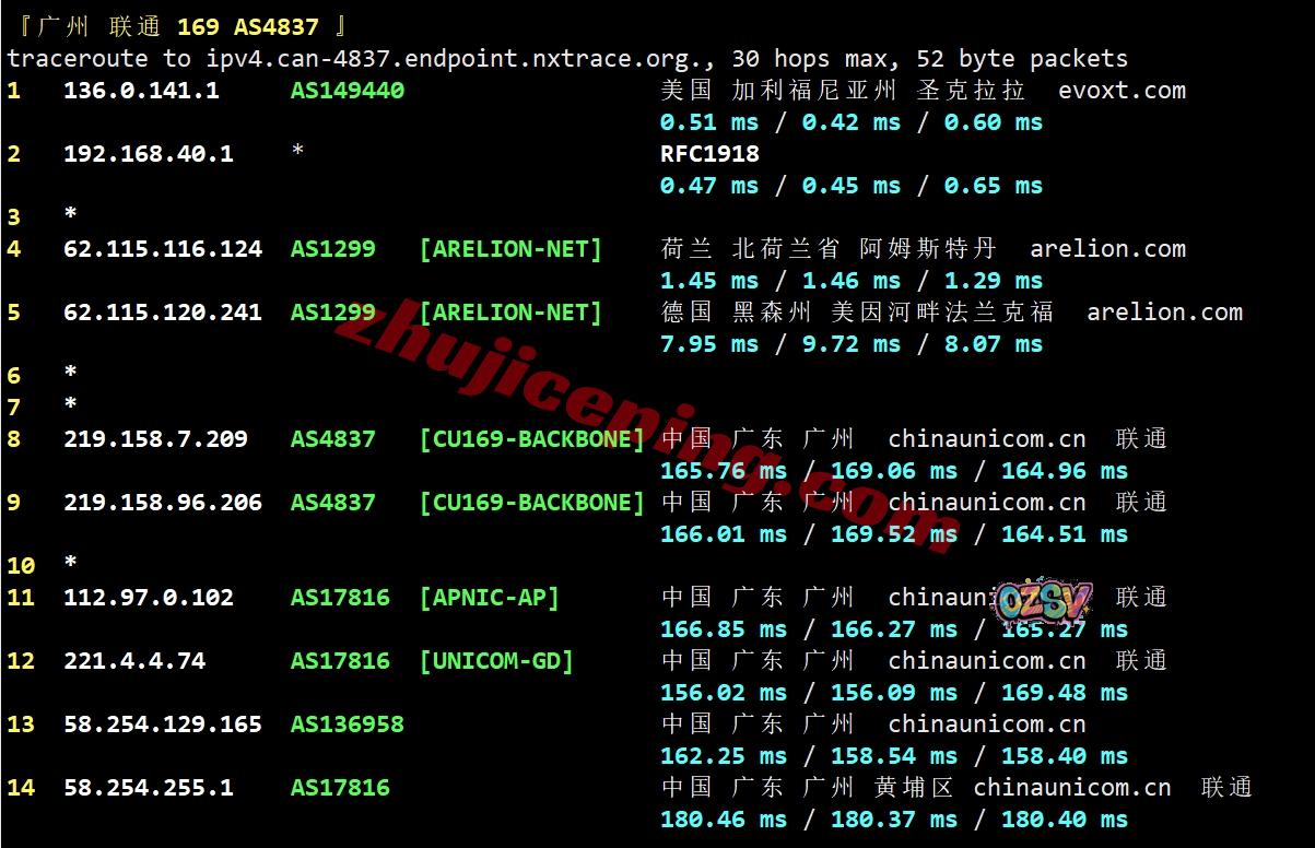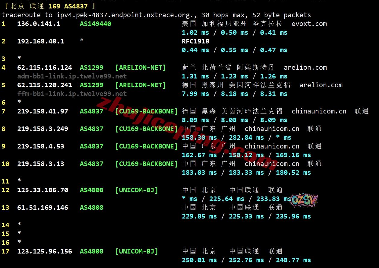 联通去程:直连联通德国法兰克福节点然后接telia去荷兰