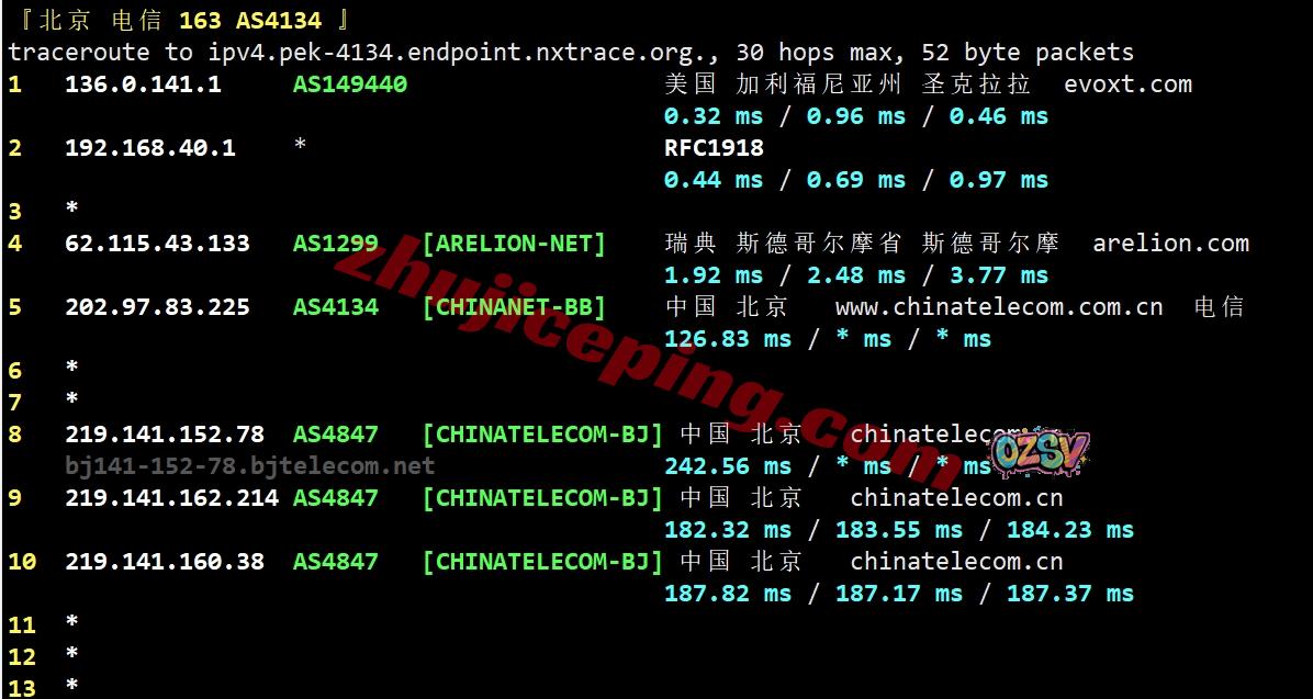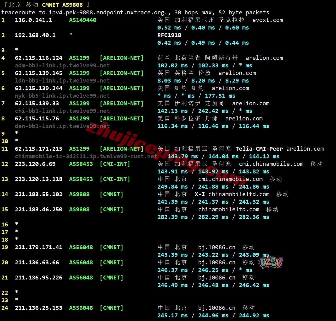 北京方向:走telia经过英国区美国,然后从移动圣何塞节点直连回国