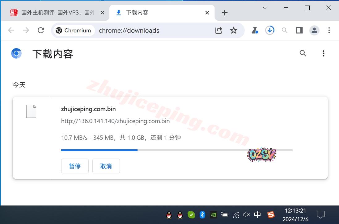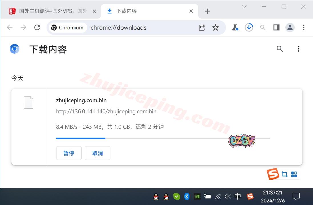 存放在测试VPS上的文件,广州联通家宽直接用Chrome下载该文件,大致的下载速度: