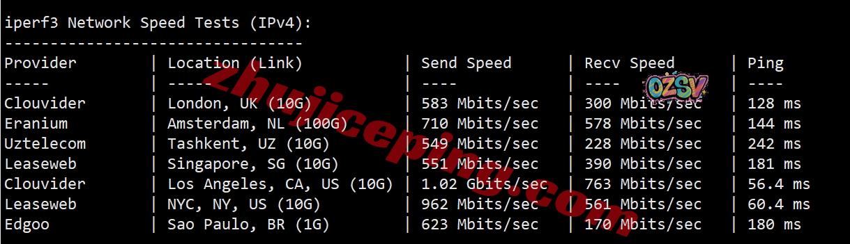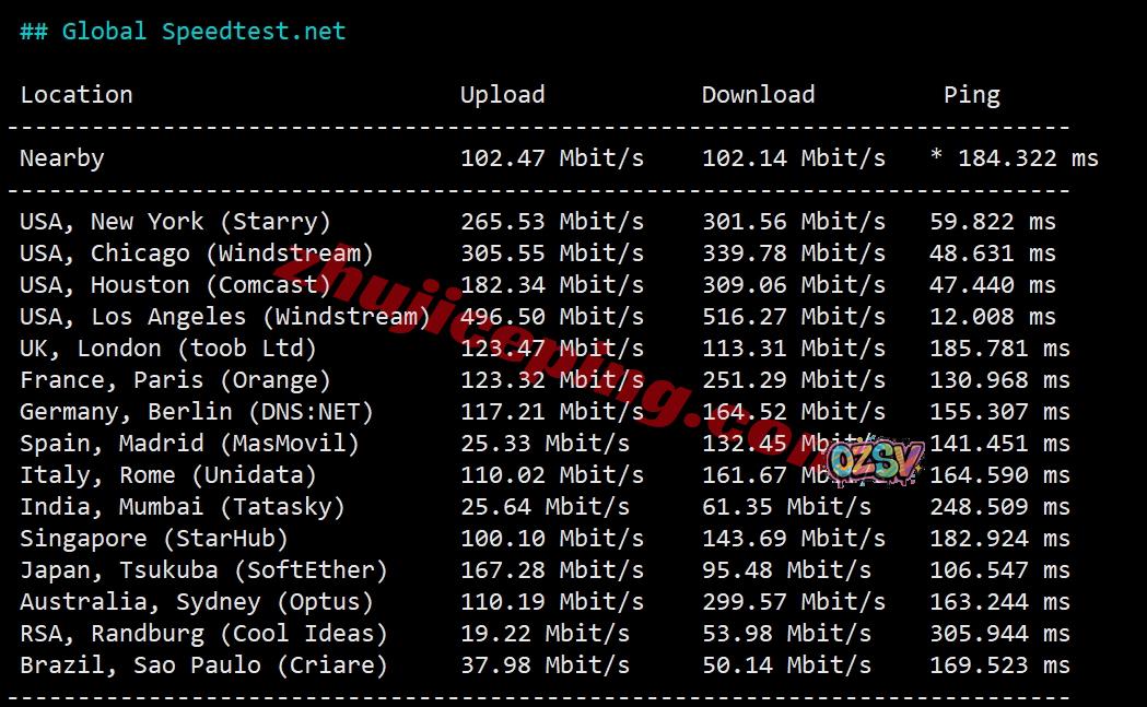 speedtest.net的部分亚洲节点的带宽上下行测试: