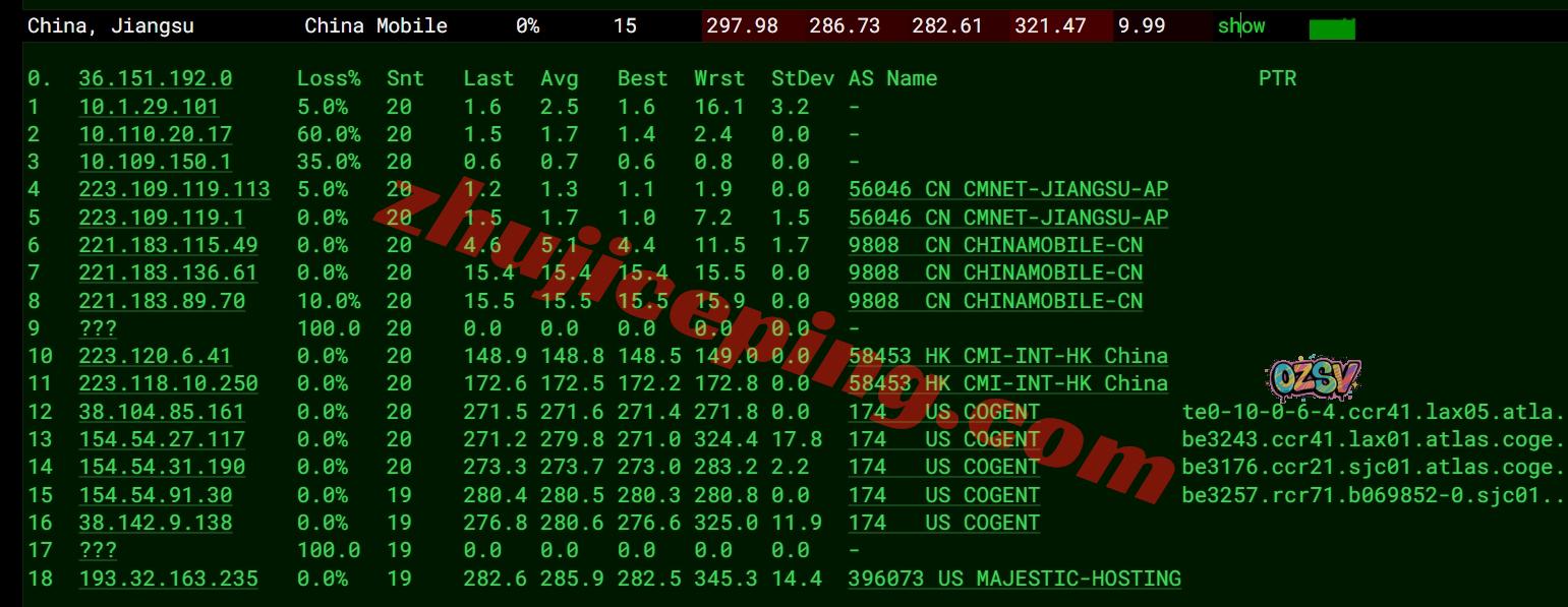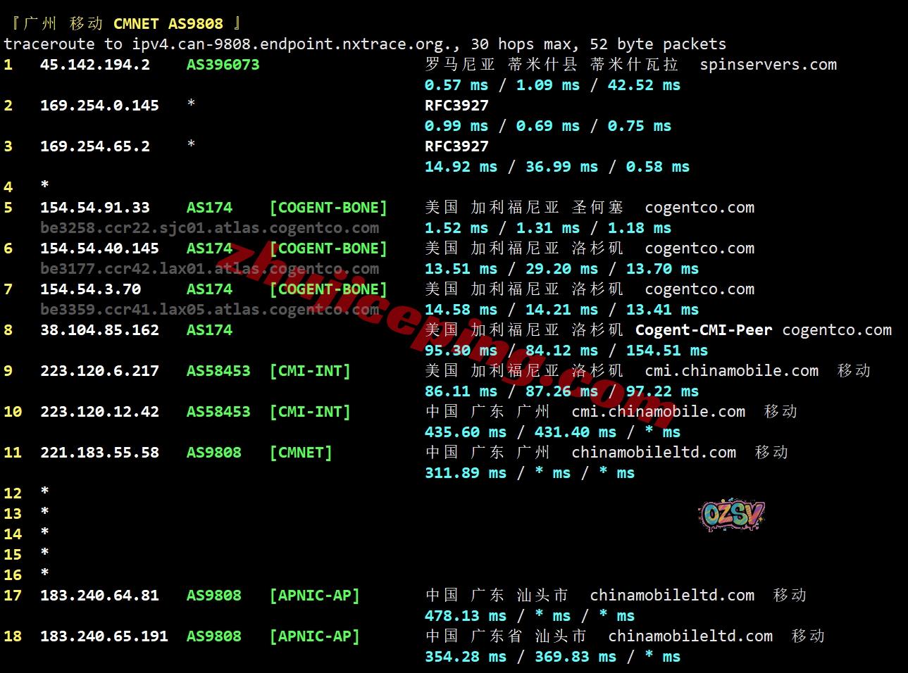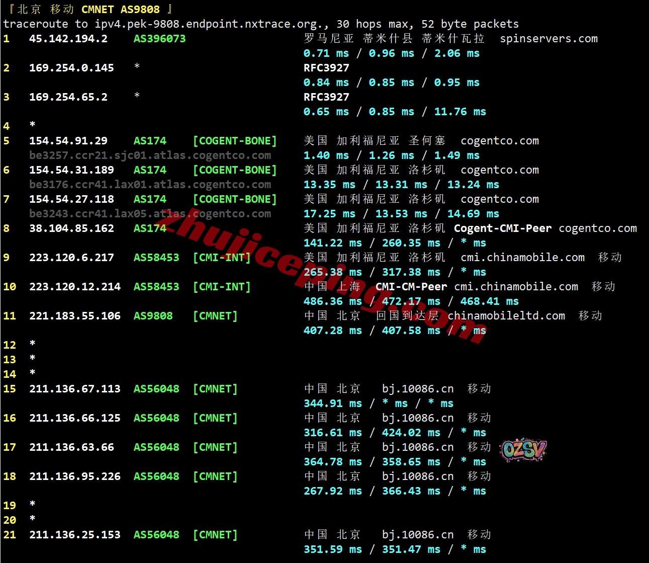 移动去程:直连移动美国洛杉矶节点然后接cogent去机房