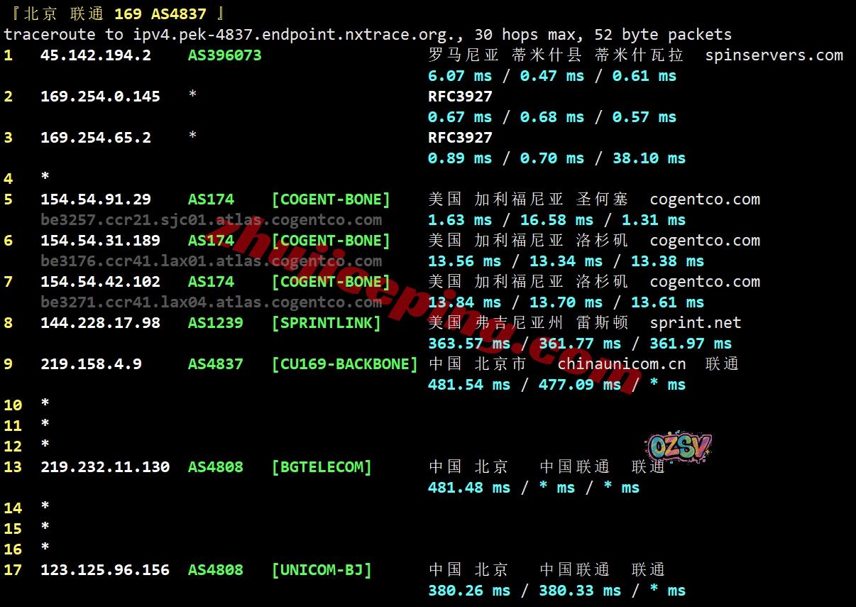 回程:电信走cogent国际线路回国,走cogent从美国东海岸出海再回国,移动回程是cogent接圣何塞节点直连出海回国。