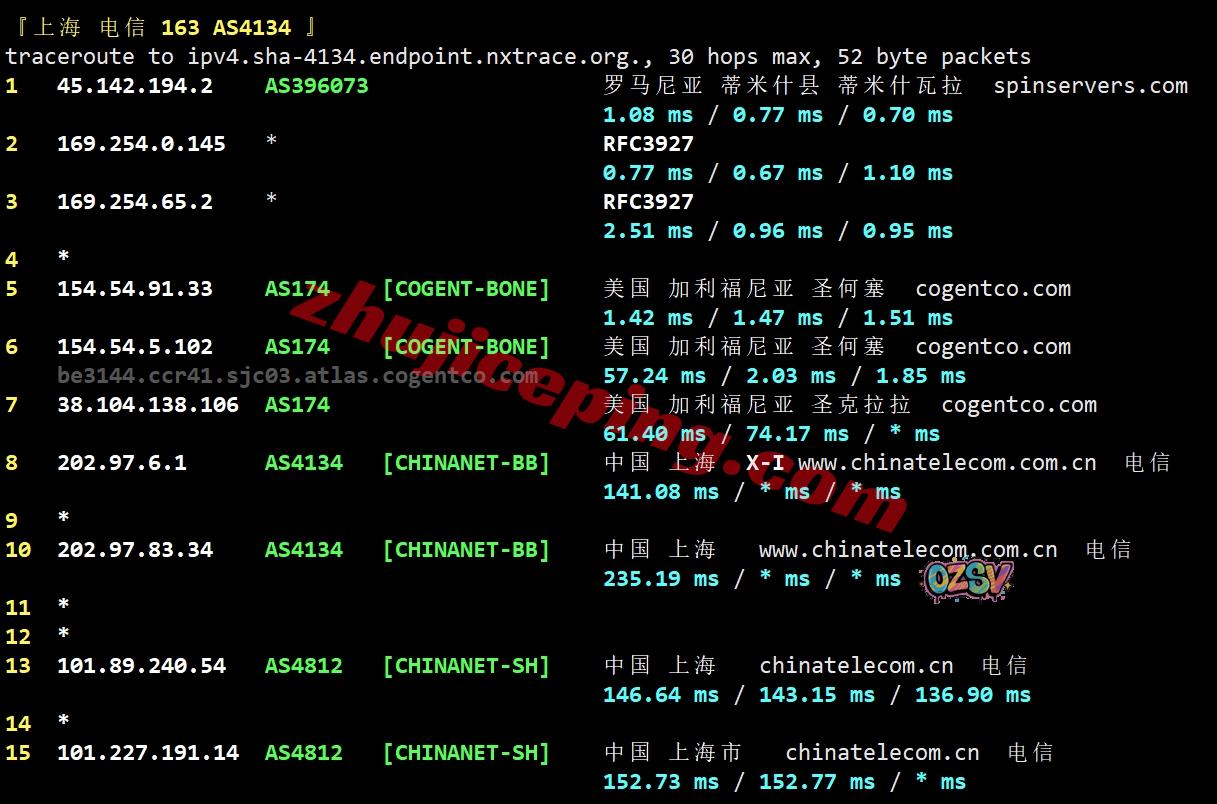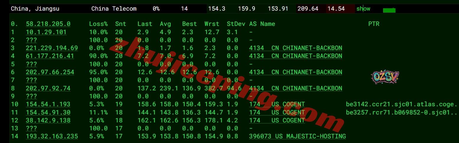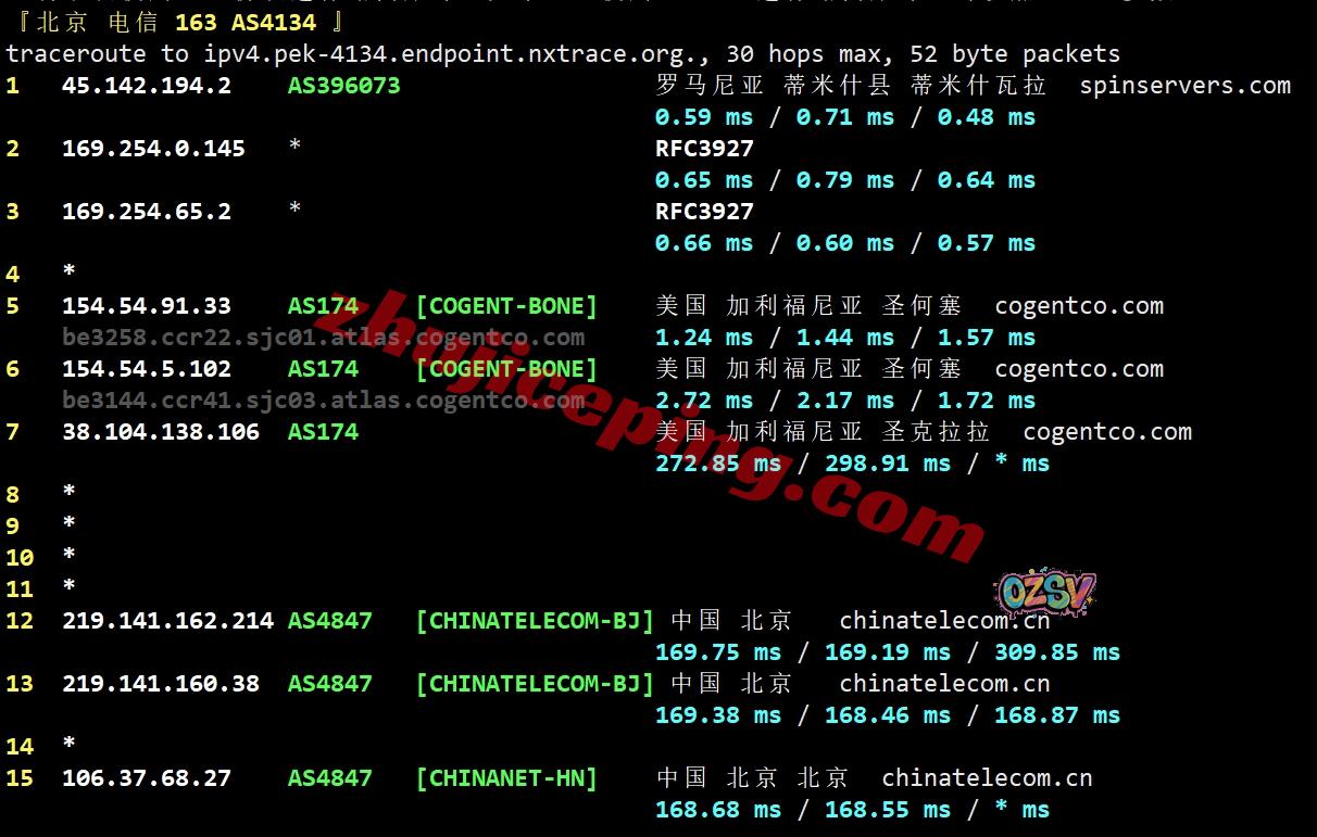 电信去程:直连电信美国圣何塞节点然后接cogent去机房