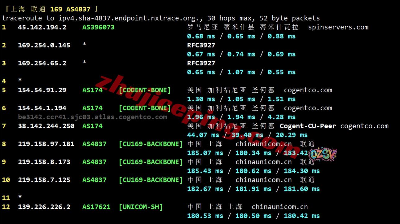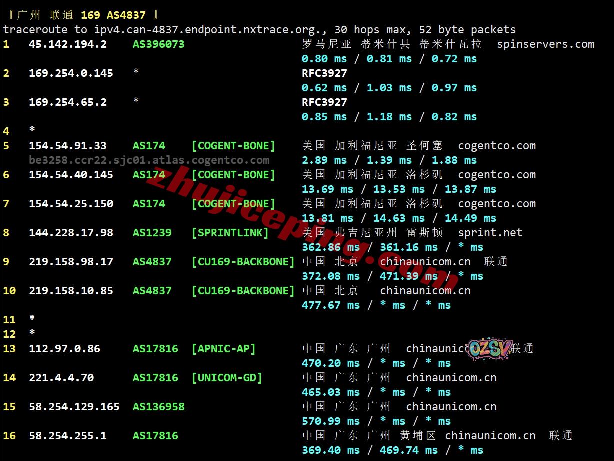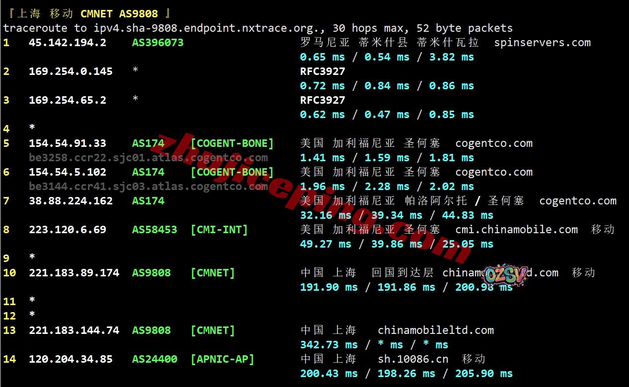 上海/广州方向:走cogent接移动圣何塞节点直接出海回国