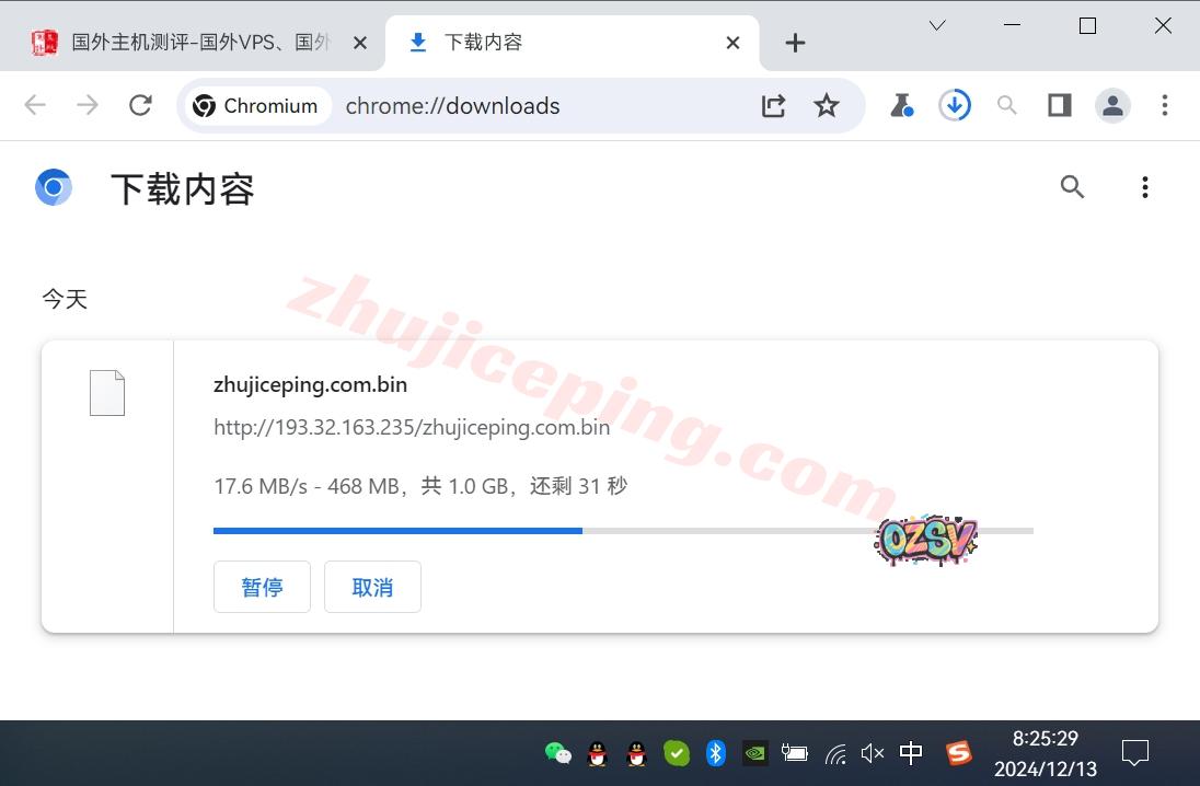 存放在测试VPS上的文件,广州联通家宽直接用Chrome直接下载,大致下载速度如下: