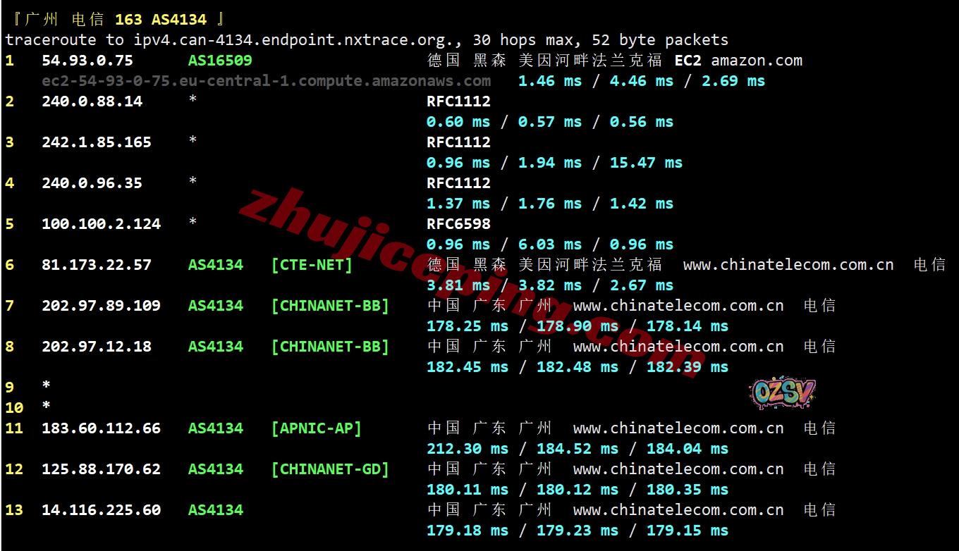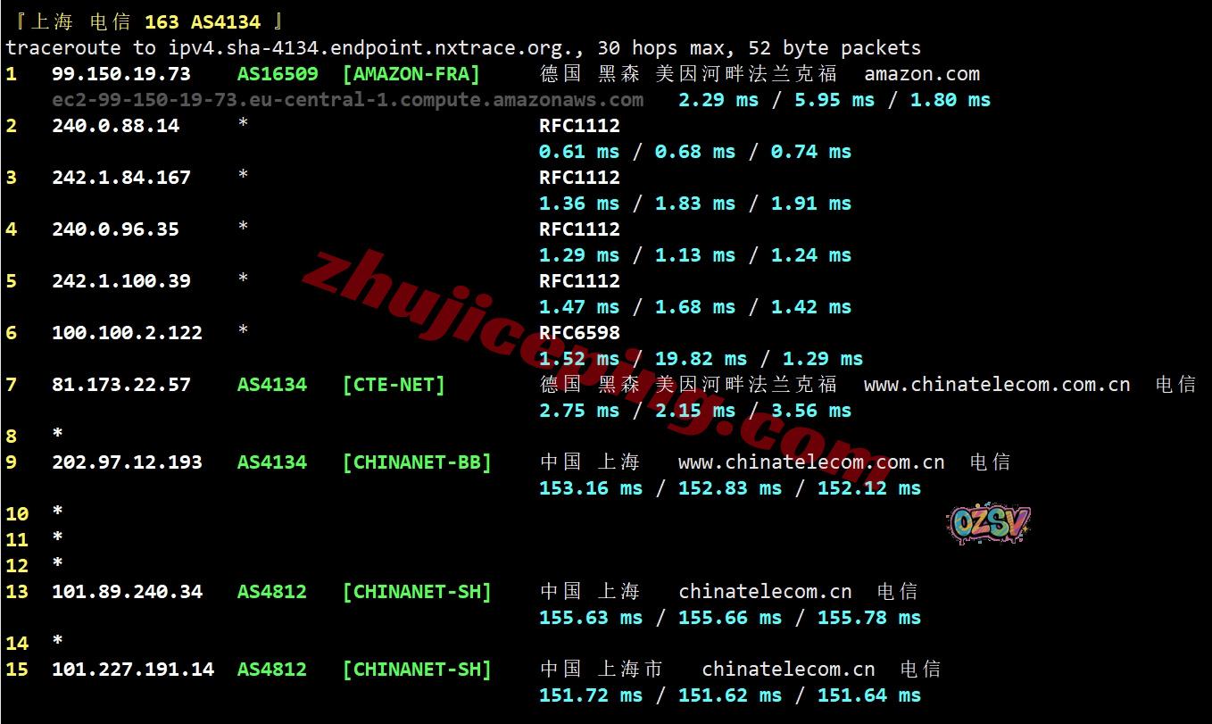 电信回程:从电信德国法兰克福节点直连回国