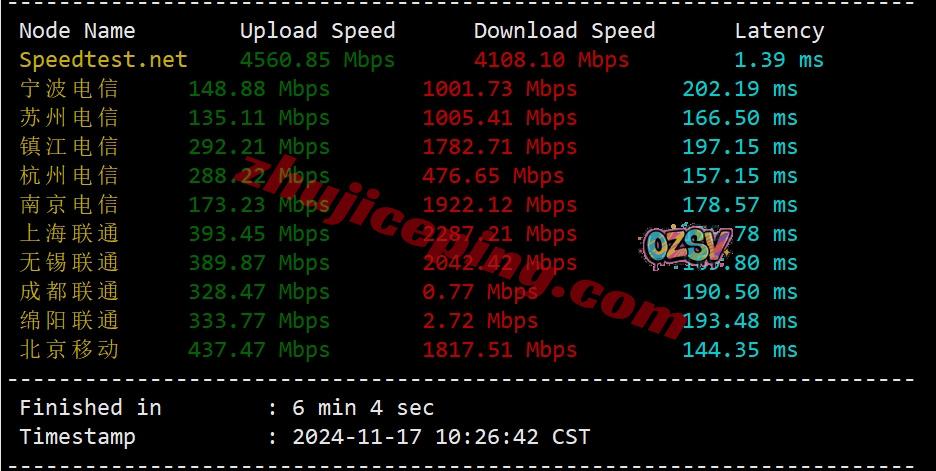 国内三网多节点的带宽上下行测试数据如下: