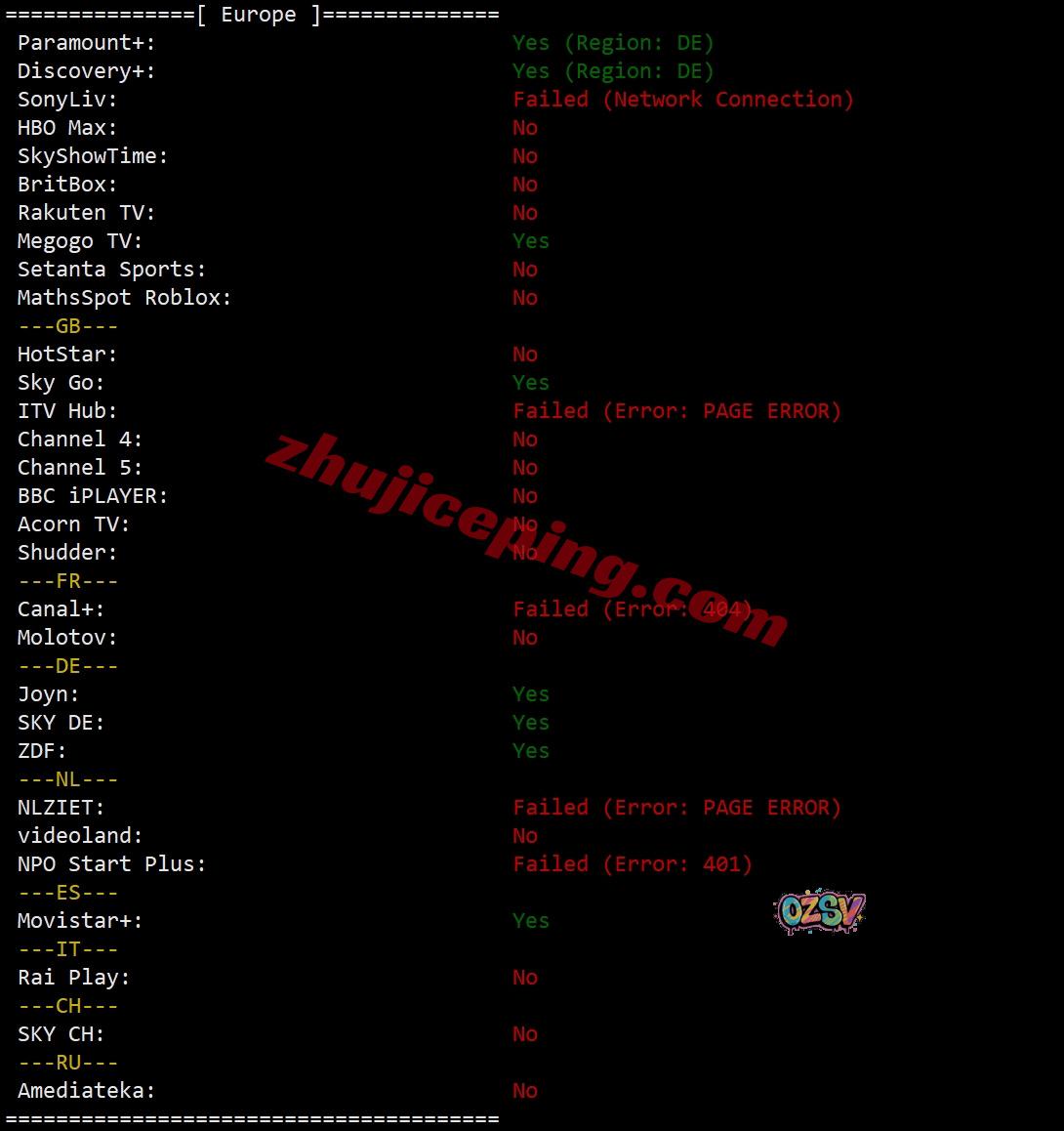 部分流媒体解锁测试结果:
