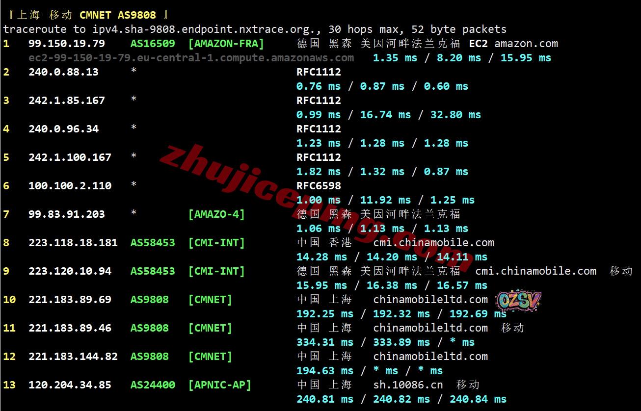 移动去程:直连移动英国伦敦节点,然后去德国