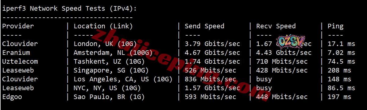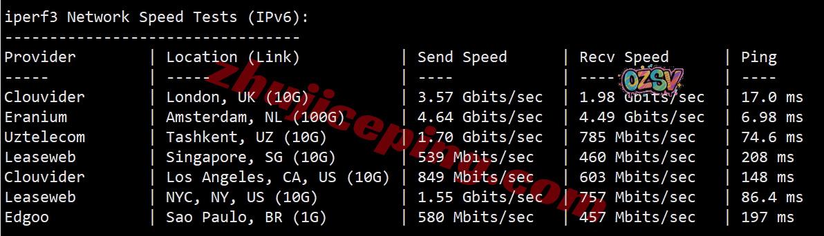 iperf3测试,几个热门国际节点的测试数据: