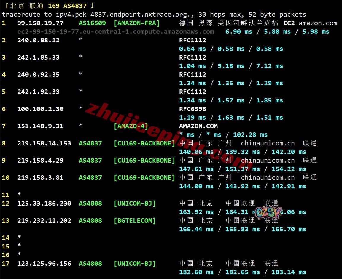 联通回程:部分看不到,但是从延迟来看基本上AS4837直连回国八九不离十