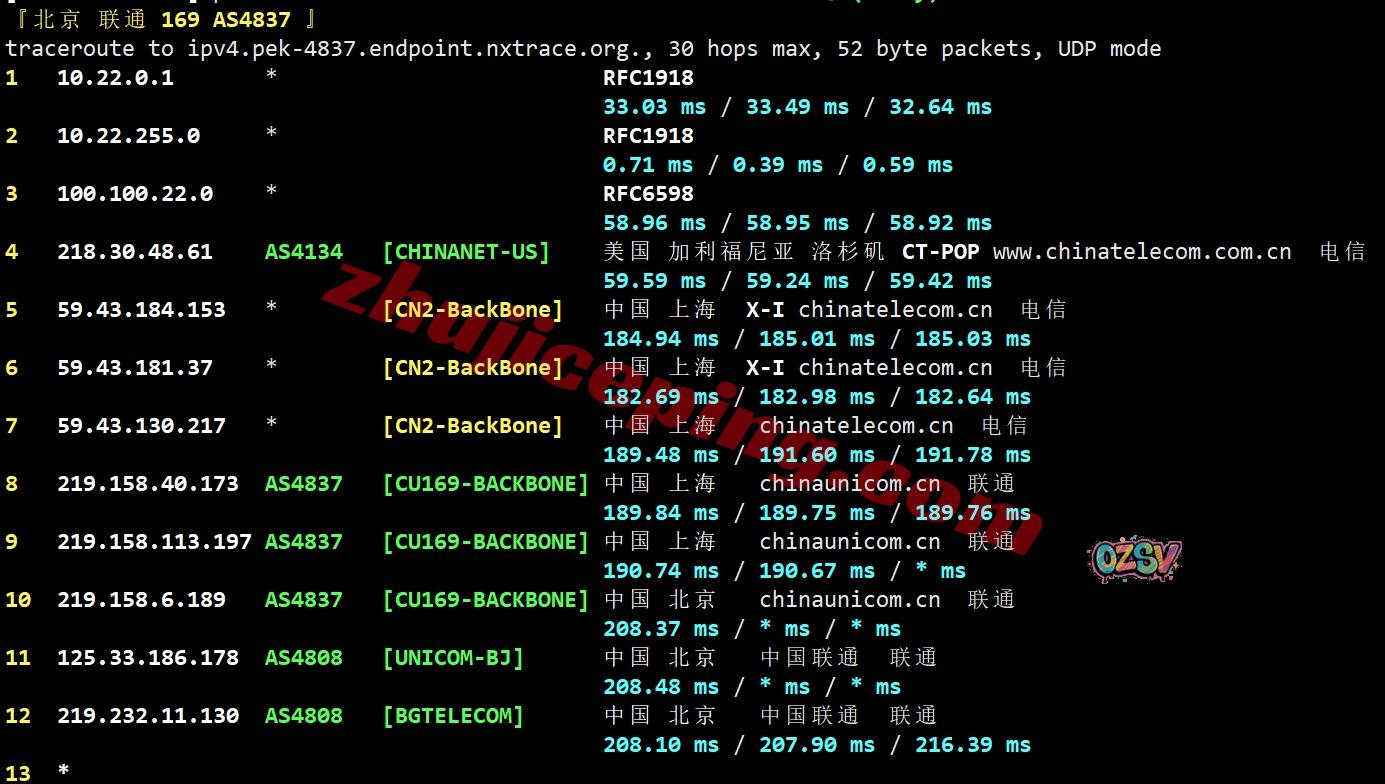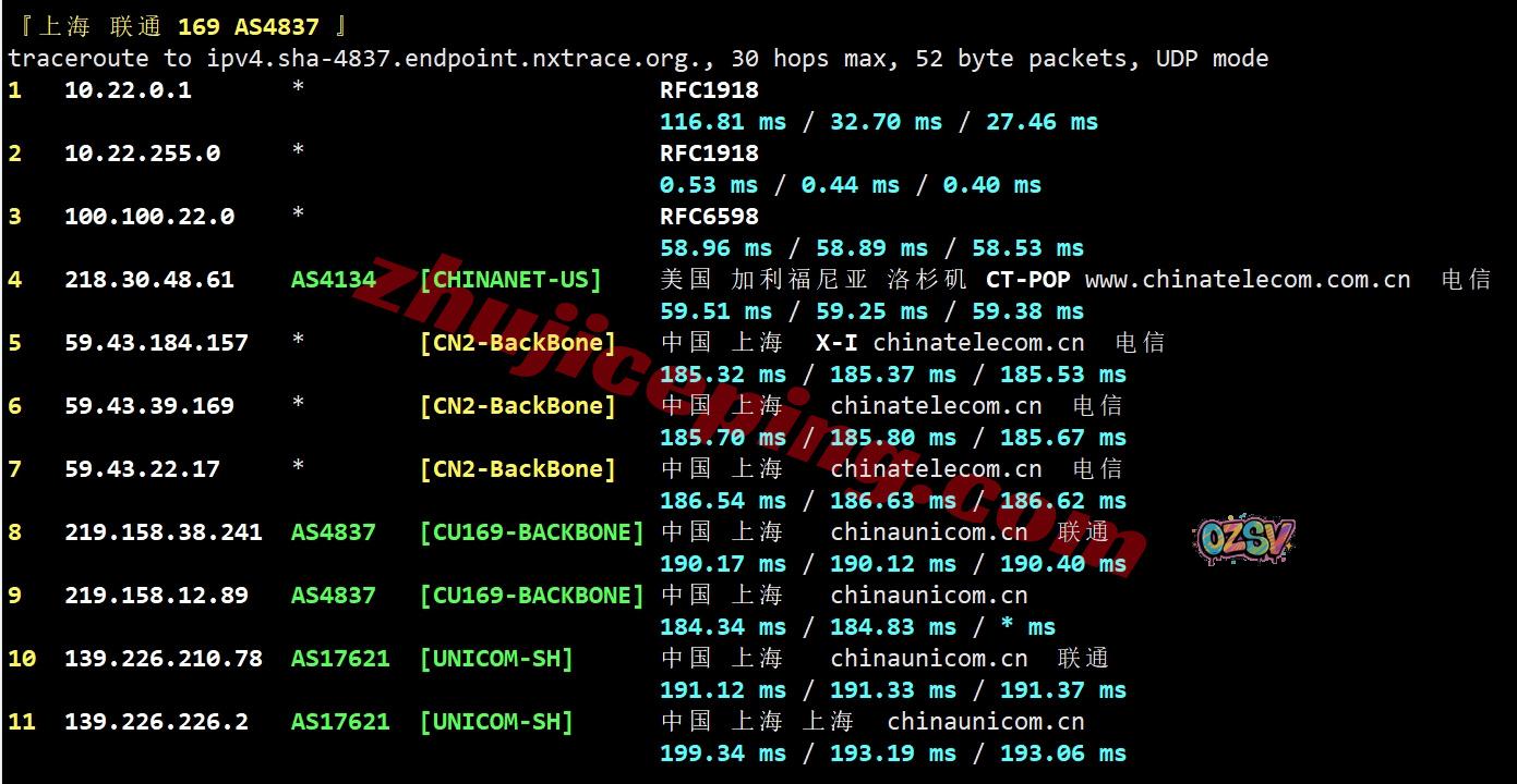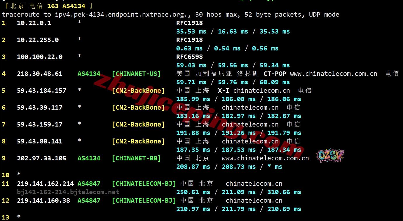 回程:电信和联通都是先内网到西海岸的洛杉矶,然后走CN2高端链路回国;移动是走自己的高端CMIN2/AS58807回国。