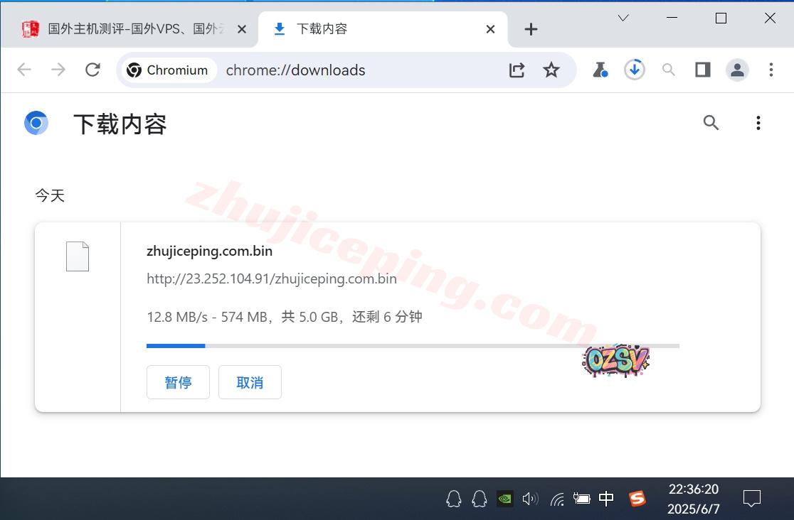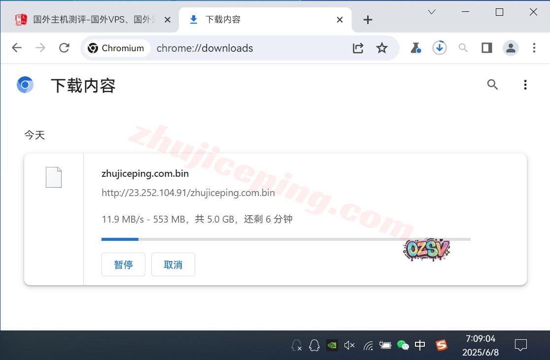 存放在测试VPS上的文件,站长广州联通家宽用Chrome下载该文件,大致的下载速度如下: