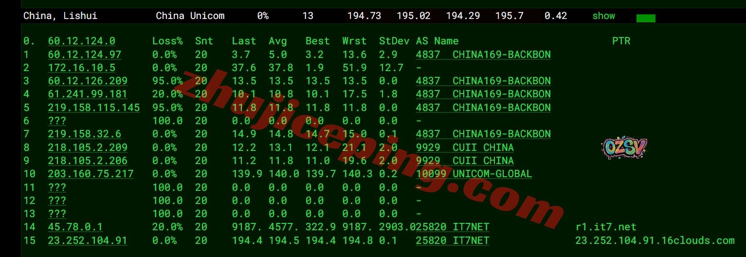 联通去程:走高端AS9929+AS10099直达联通美国洛杉矶节点,然后内网去搬瓦工纽约机房