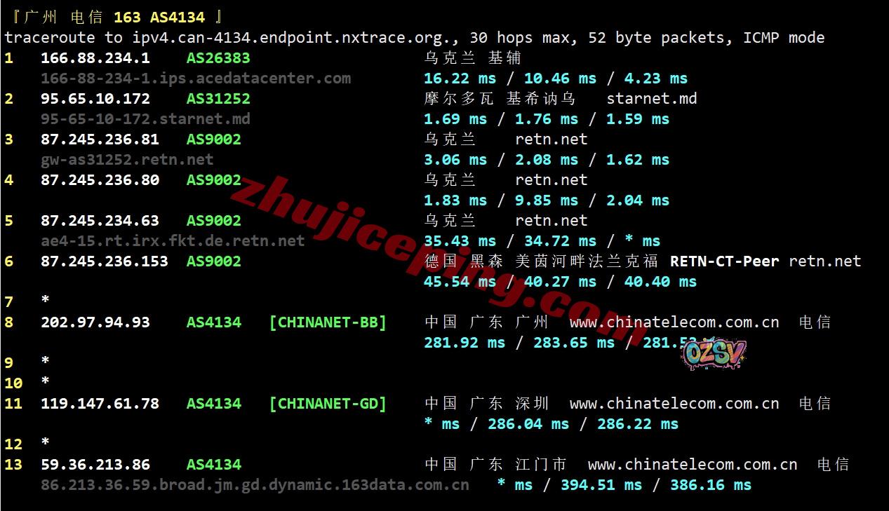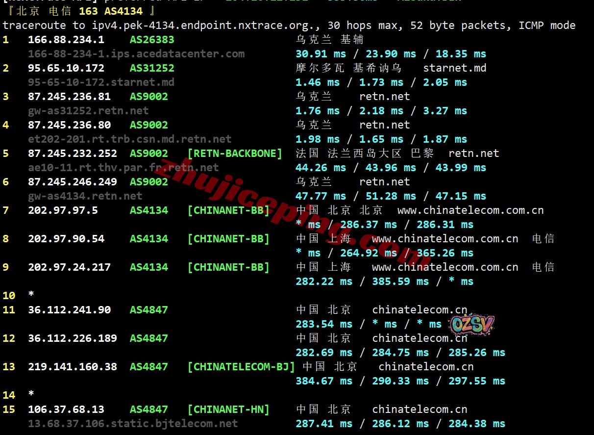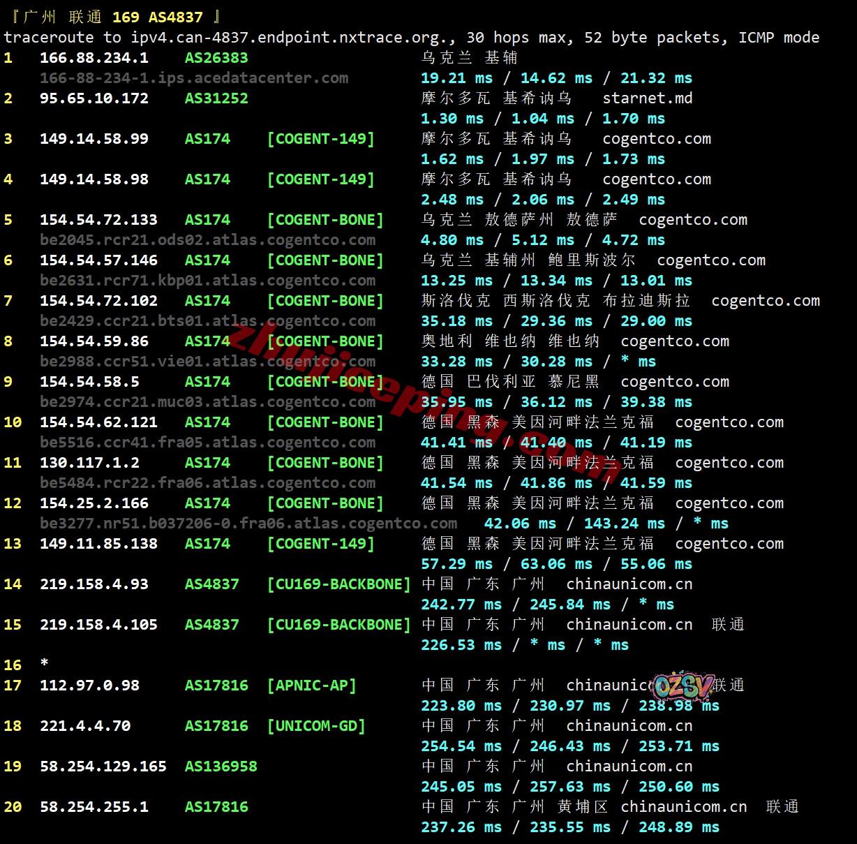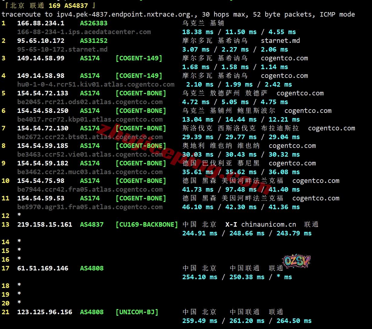 北京、广州方向:走cogent经过乌克兰、斯洛伐克、奥地利、德国然后去中国