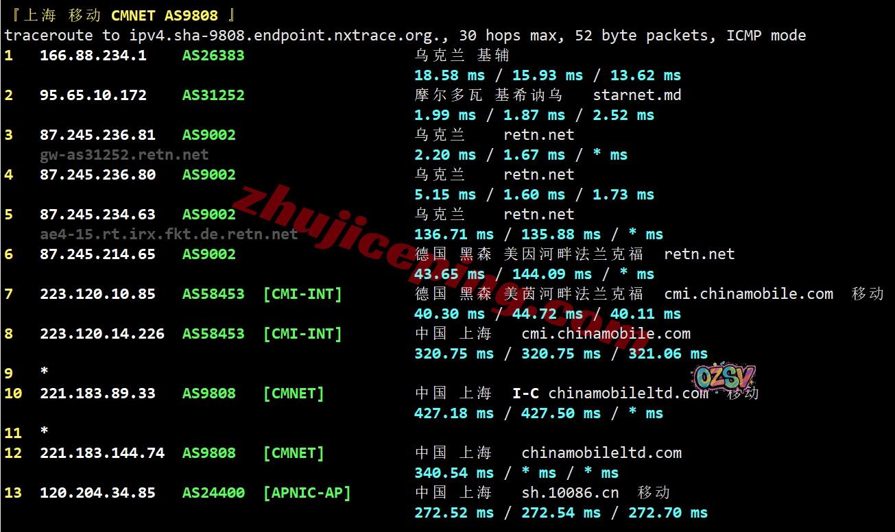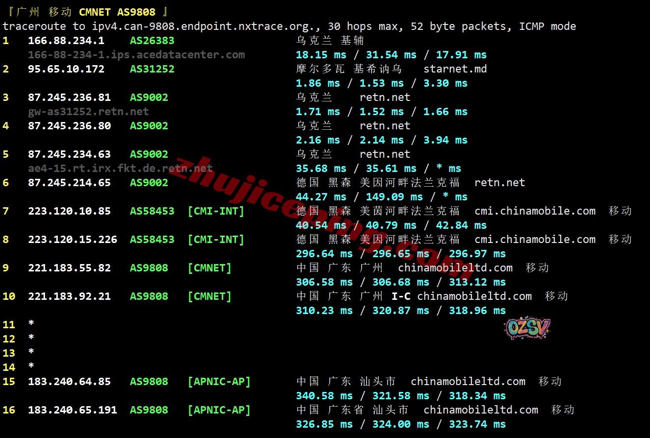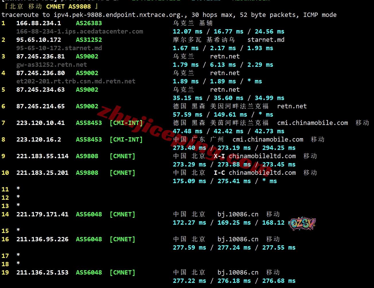 移动回程:走retn经过乌克兰去德国,从移动德国法兰克福节点直连回国