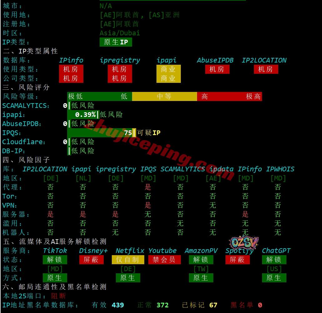 多个数据库对当前IP的大致判断,显示原生阿联酋IP: