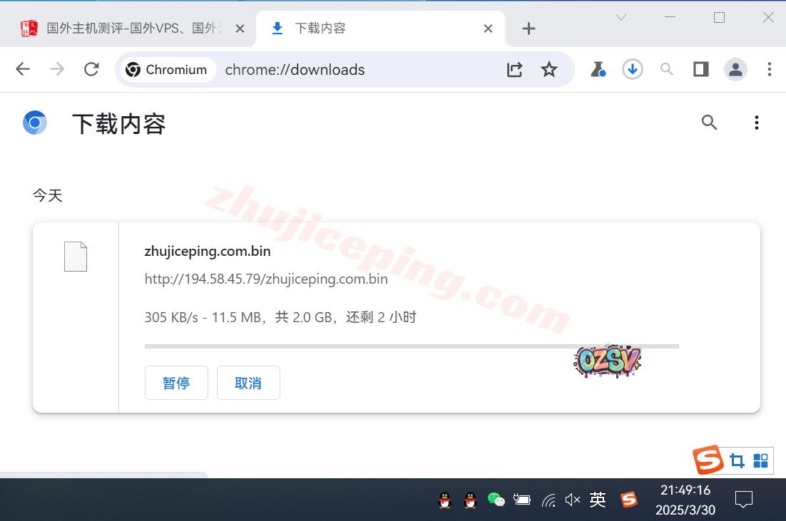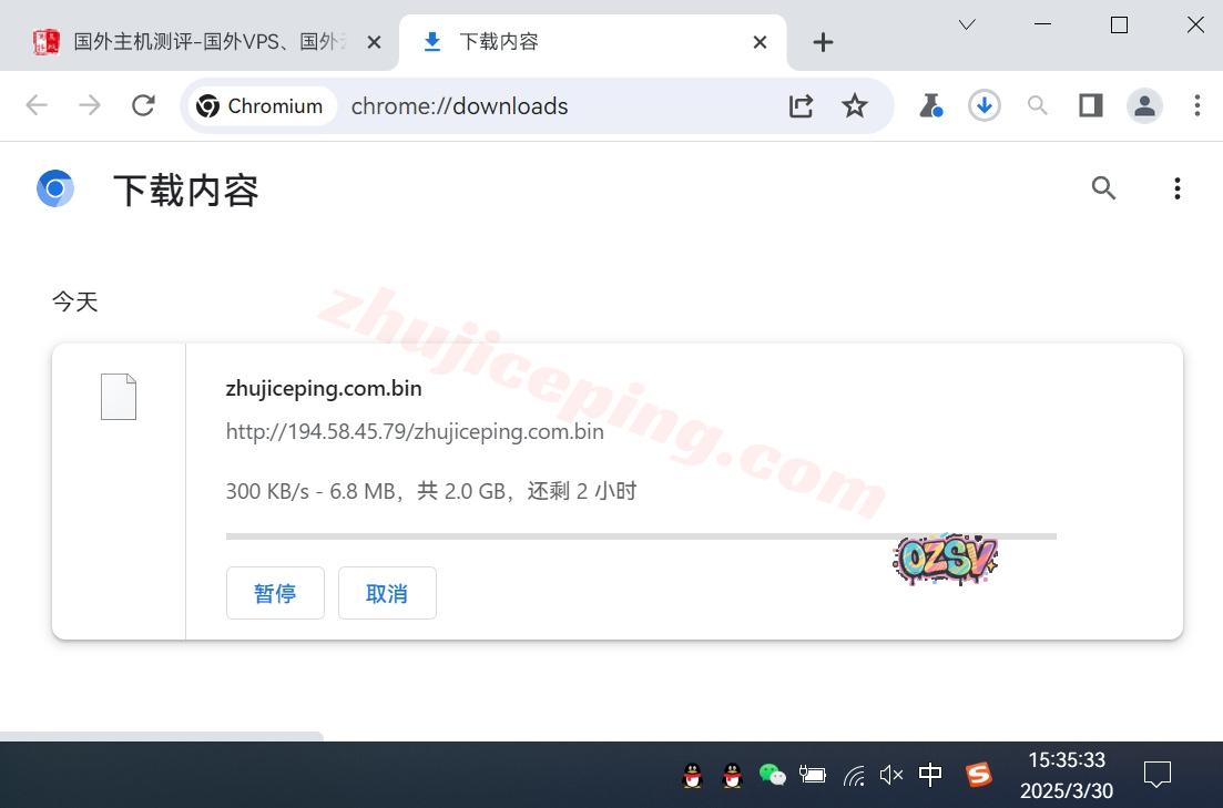 存放在测试VPS上的文件,广州联通家宽直接用Chrome下载,大致速度如下所示: