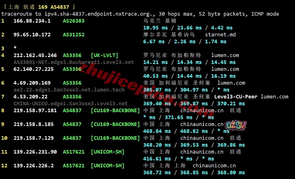 上海方向:走level3经过罗马尼亚去美国西海岸圣何塞,从圣何塞peer/level3直接回国