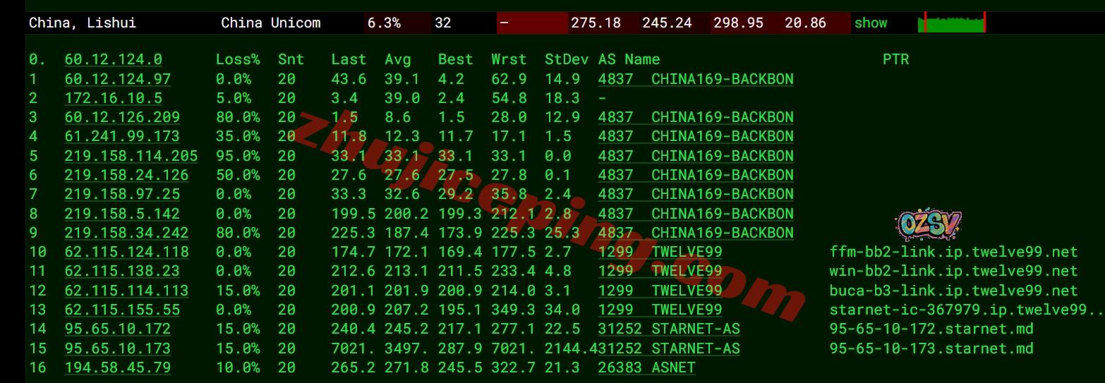 联通去程:直连联通德国法兰克福节点然后接telia一路去摩尔多瓦