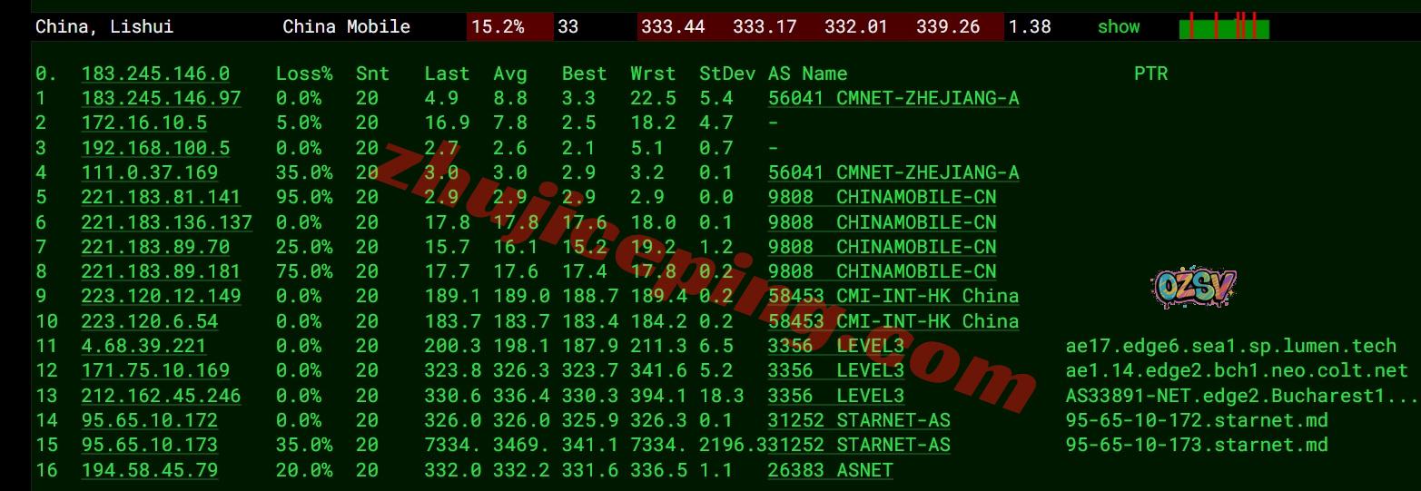 移动去程:直连移动美国西雅图节点然后接level3去罗马尼亚再去摩尔多瓦
