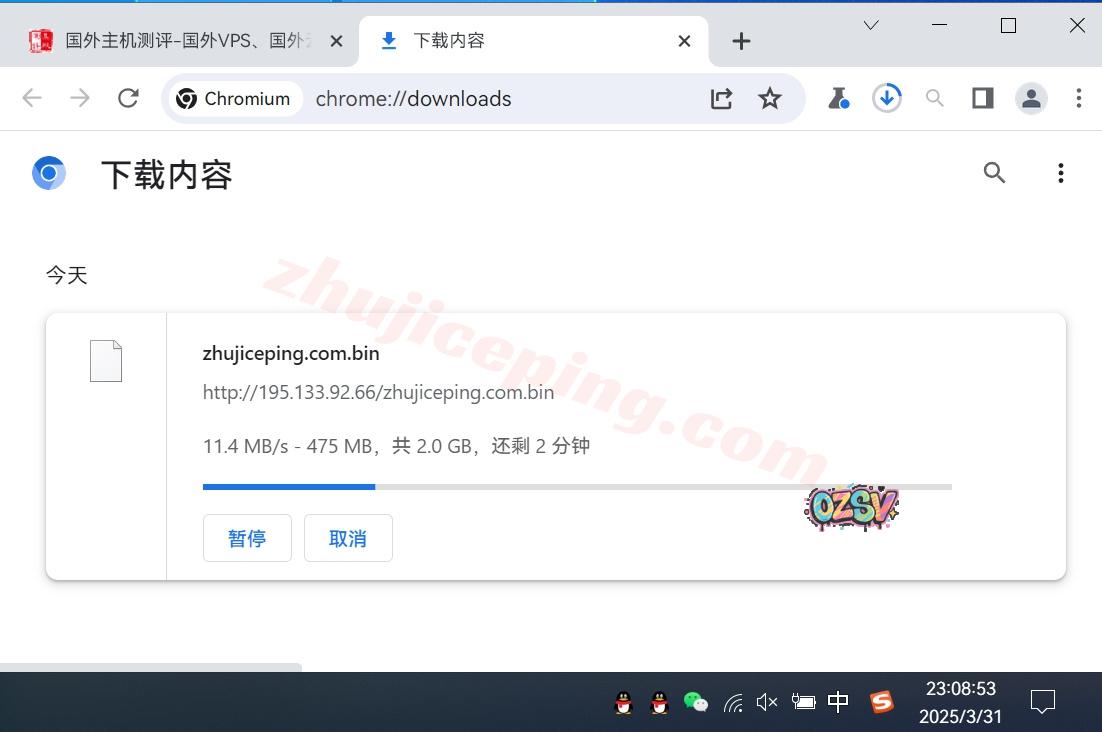 存放在测试vps上的文件,广州联通家宽用Chrome直接下载该文件,大致的下载速度如下所示: