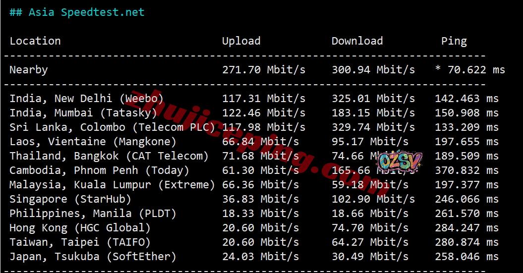 再看看speedtest的部分亚洲节点的带宽上下行测试数据: