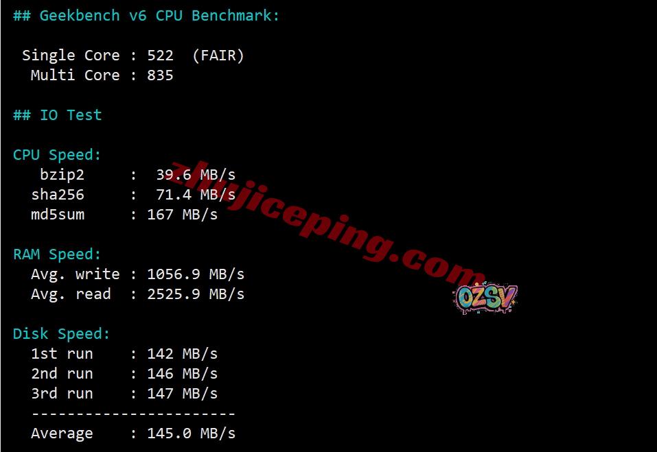 服务器所用的CPU型号为e5-2683v4(16核、32线程、主频2.1GHz、加速频率3.0GHz,多数情况下服务器一般用双路CPU),站长启用了BBR,不支持IPv6,归属地德国,官方自己的AS,当前I/O大致145MB/S: