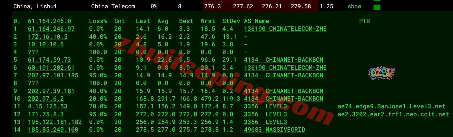 电信去程:直连电信美国圣何塞节点然后接level3去德国