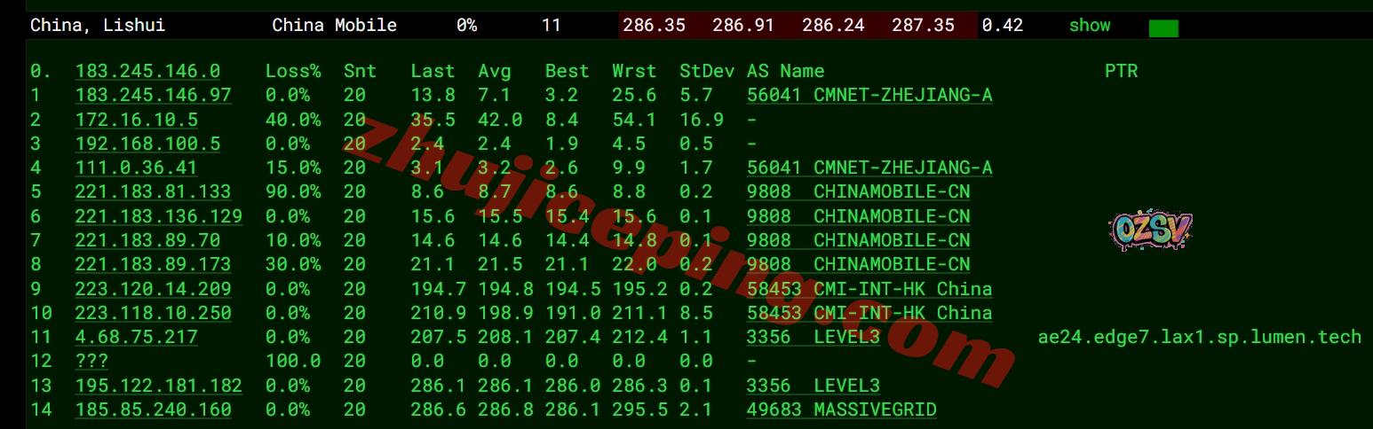 移动去程:直连移动美国洛杉矶节点然后接lumen/level3去德国