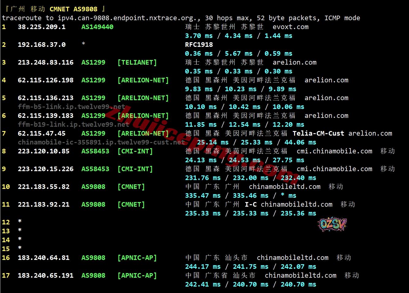 广州方向:走twelve99经过德国,从移动与telia的peer出来过移动法兰克福节点然后直连回国