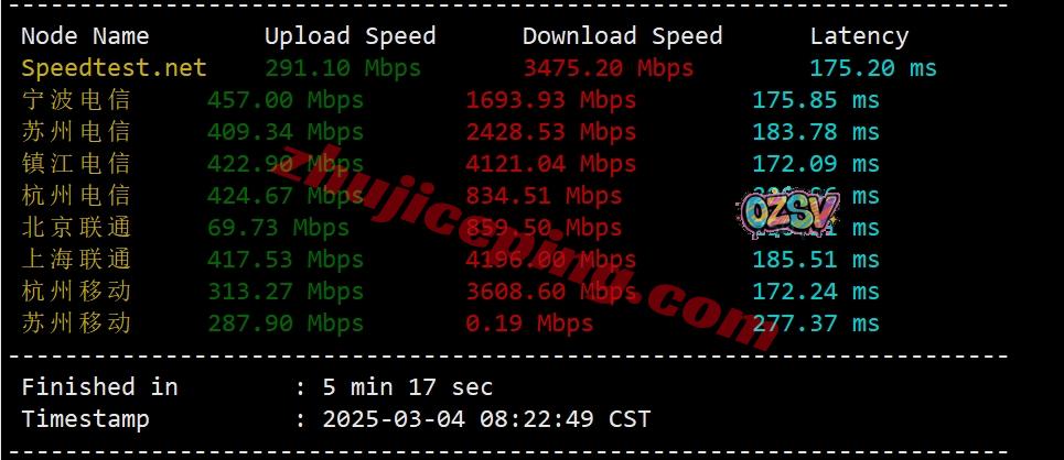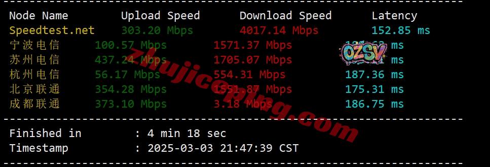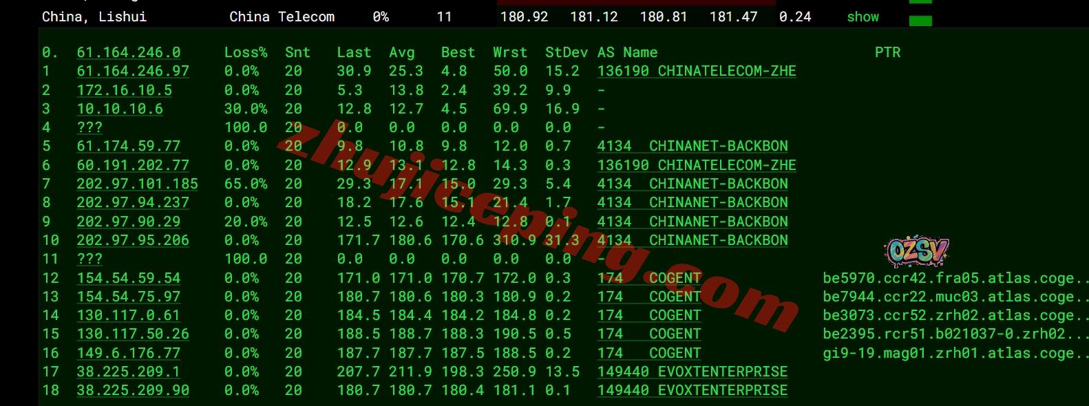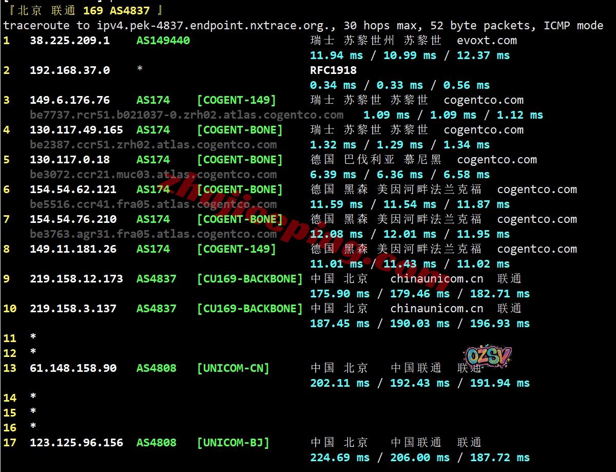 网络方面,三网的去程都是比较给力的,直连德国或者移动之后再接国际线路去瑞士;