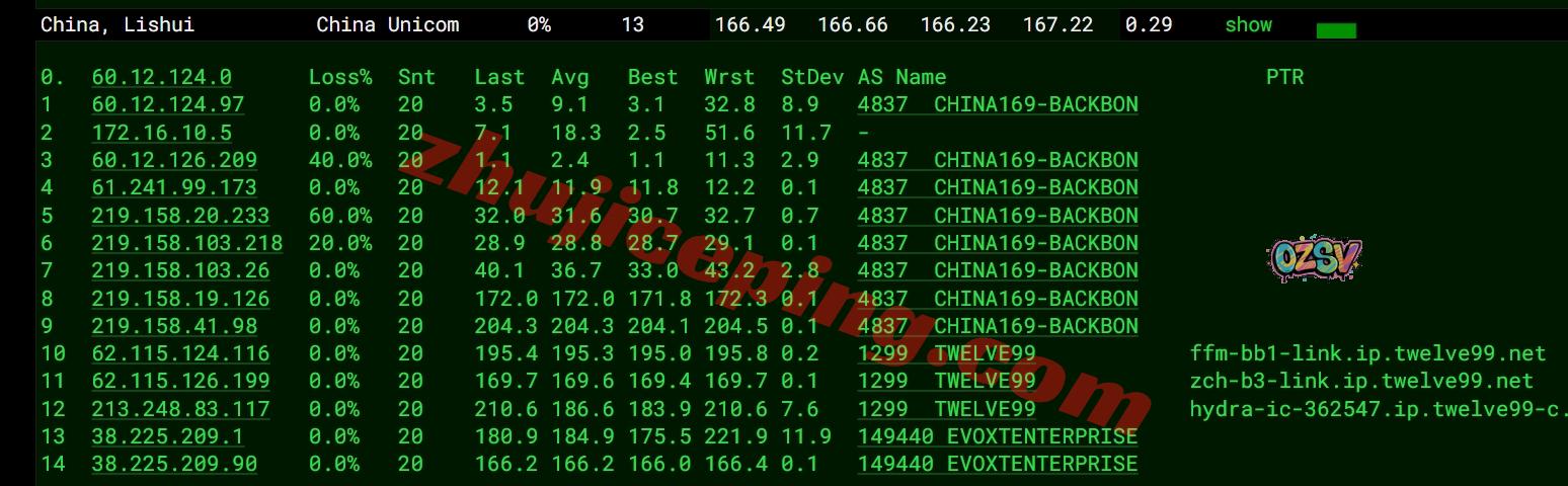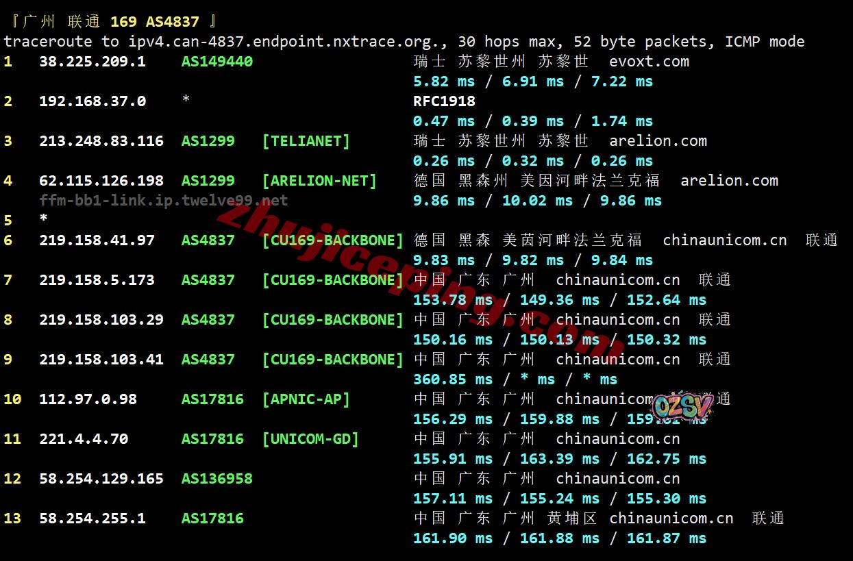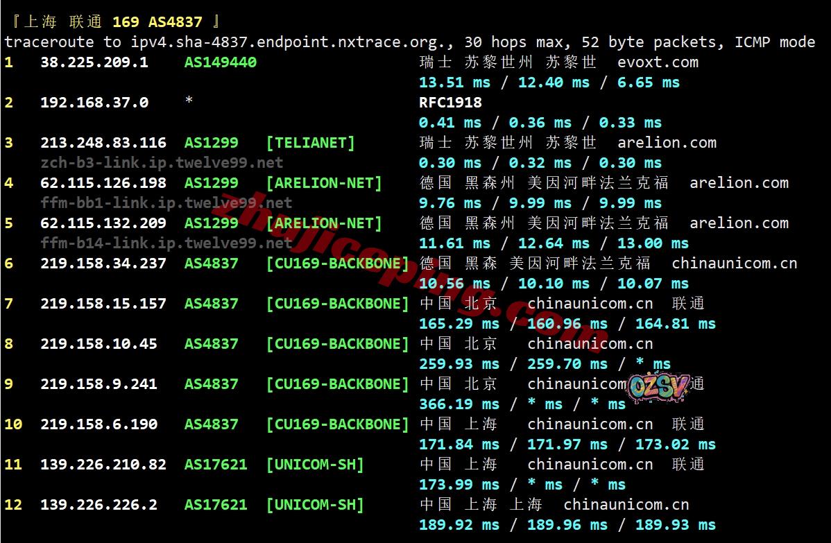 上海/广州方向:走twelve99经过德国,然后从联通德国节点直连回国