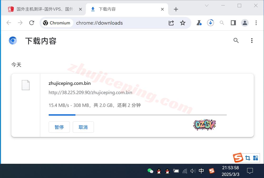 存放在测试VPS上的文件, 广州联通家宽直接用Chrome下载该文件,大致的下载速度如下: