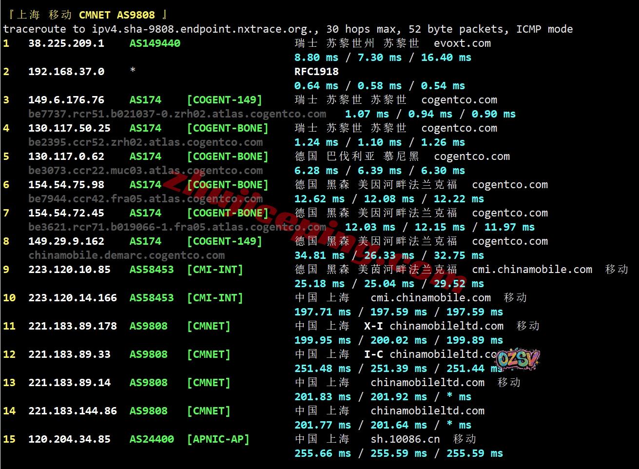 上海方向:走cogent经过德国,从移动德国法兰克福节点直连回国