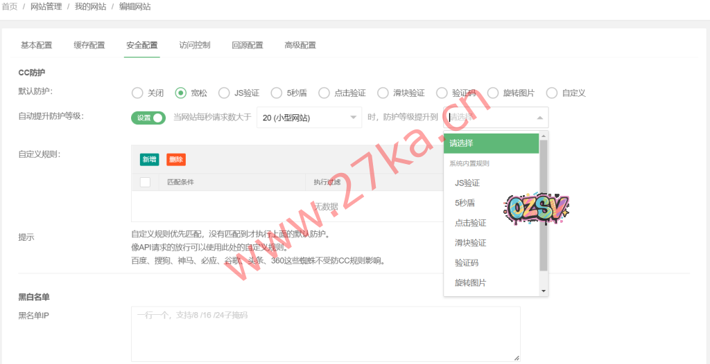 IP地址访问控制适用对指定的IP地址或网段,还有恶意的IP地址的封禁或者加白