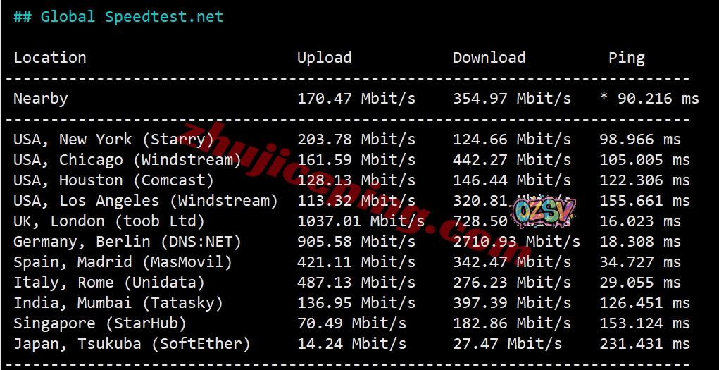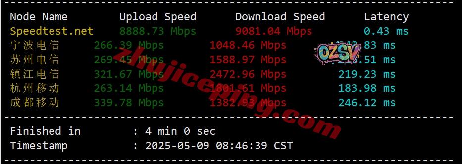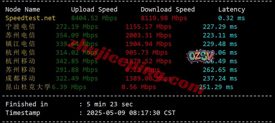 国内三网多节点的带宽上下行测试数据分享如下(联通节点测试跑不出来):