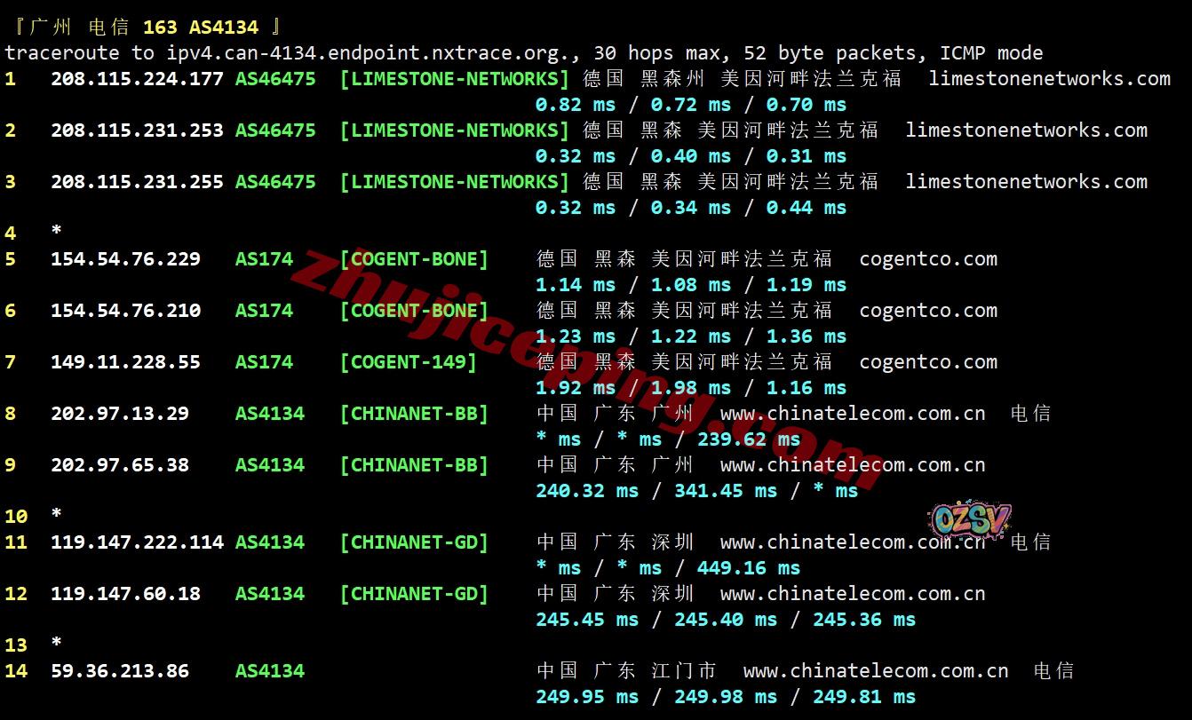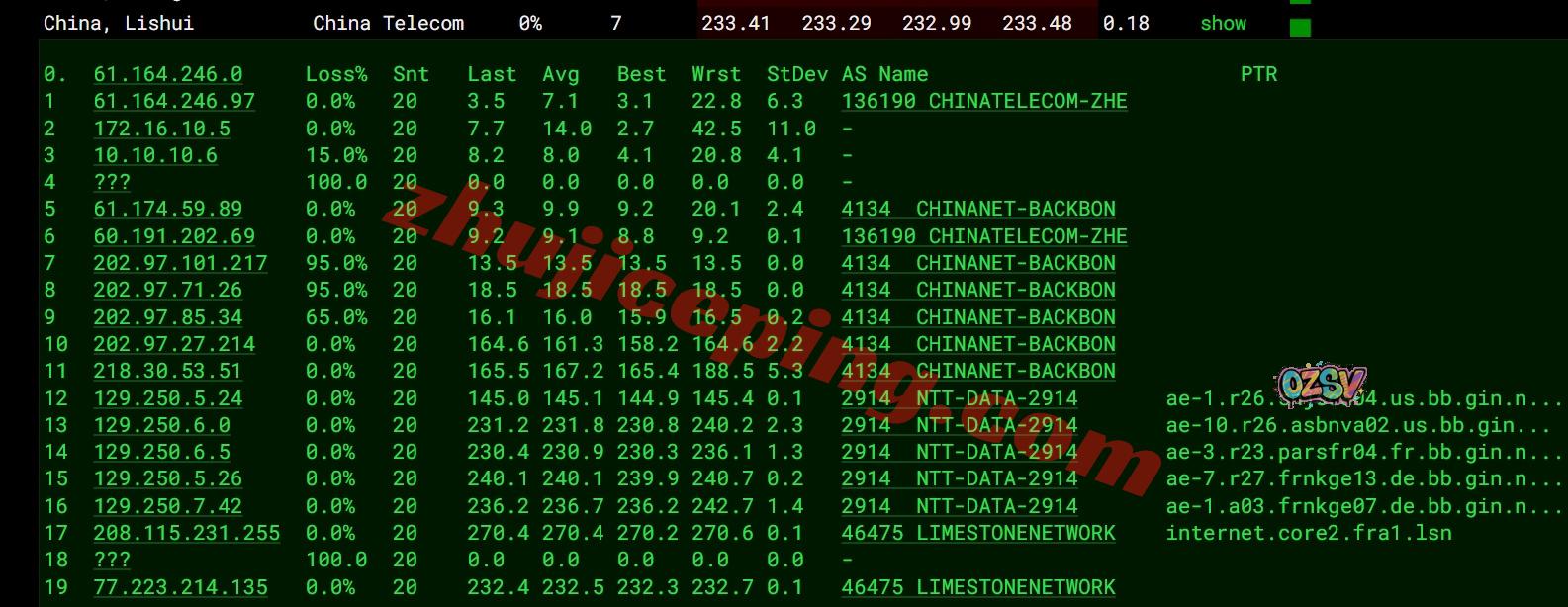 电信去程:直连电信美国圣何塞节点,然后接NTT从东部阿什本出海去法国、德国