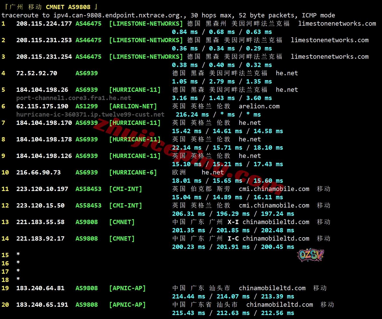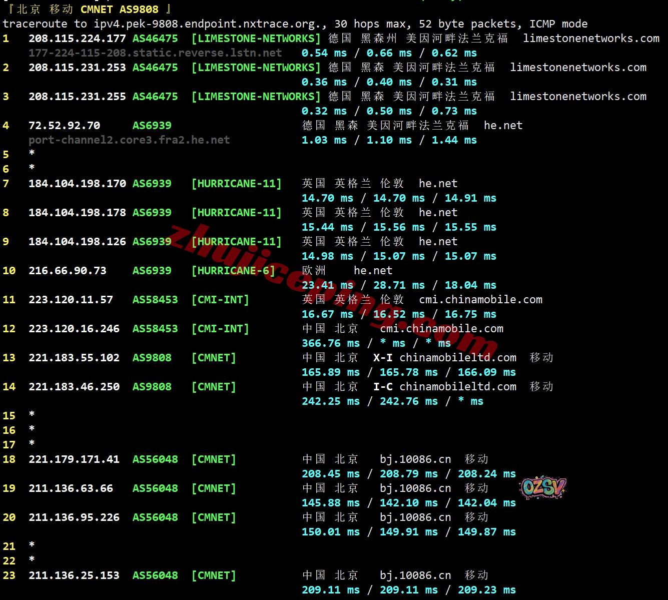 北京、广州方向:走He.net经过英国,从移动伦敦CMI节点直连回国